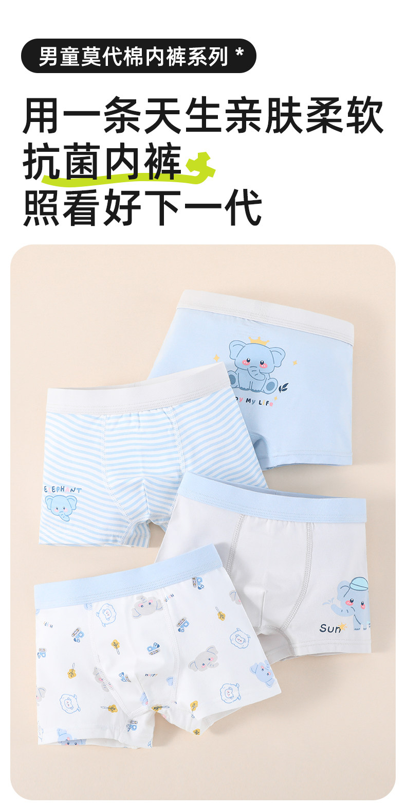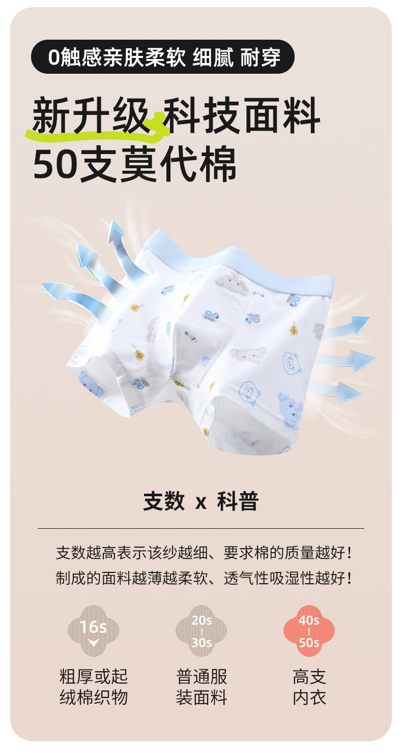 儿童内裤男童平角四角莫代尔棉男孩底裤抑菌小中大童宝宝短裤