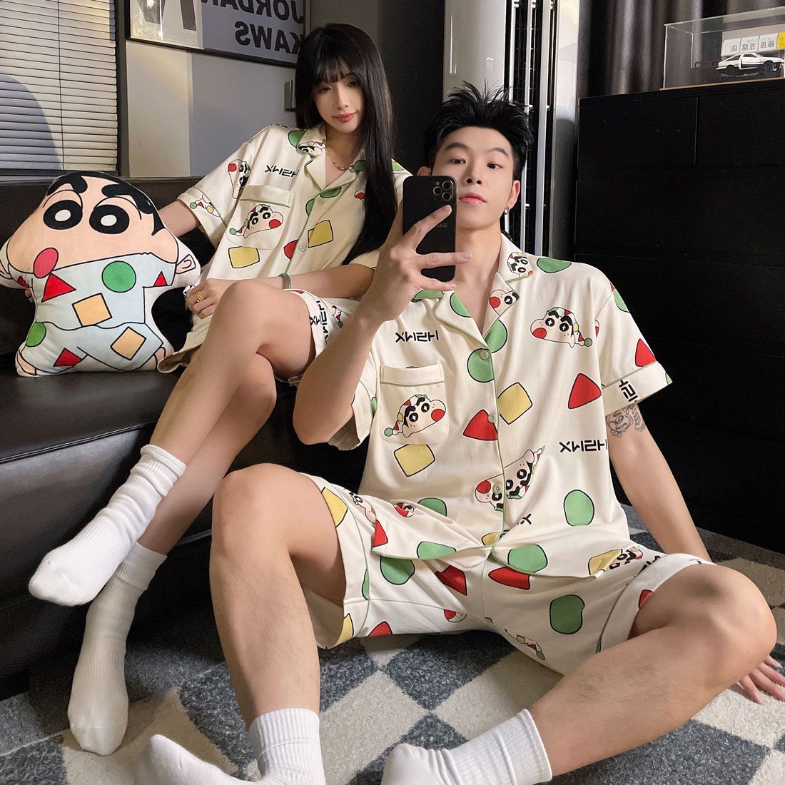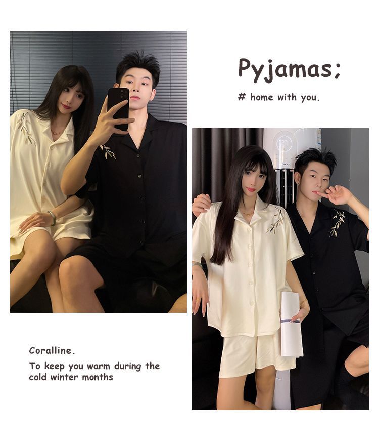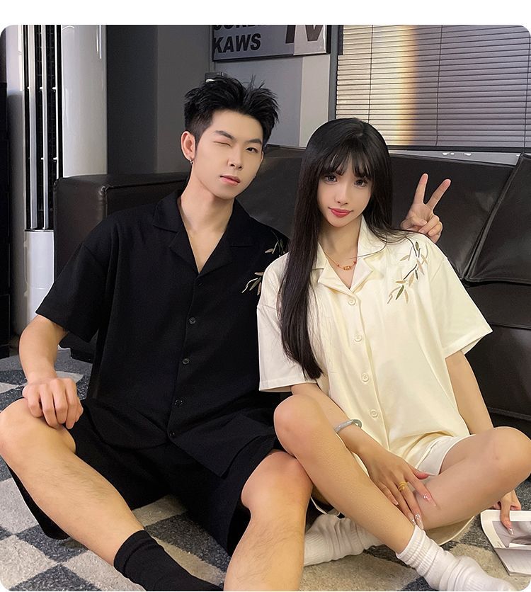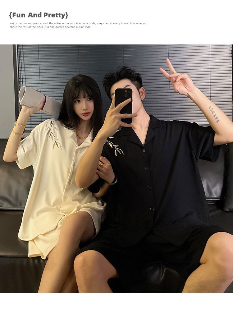 커플 잠옷 여름 코튼 남성 여성 여름 2025 새로운 반팔 반바지 캐주얼 홈웨어 세트스토어 가기