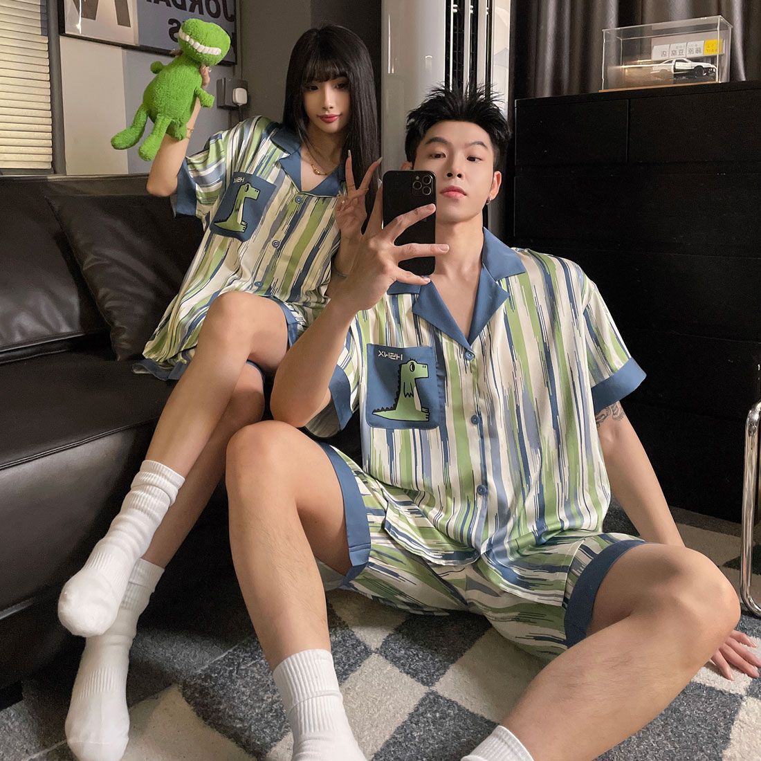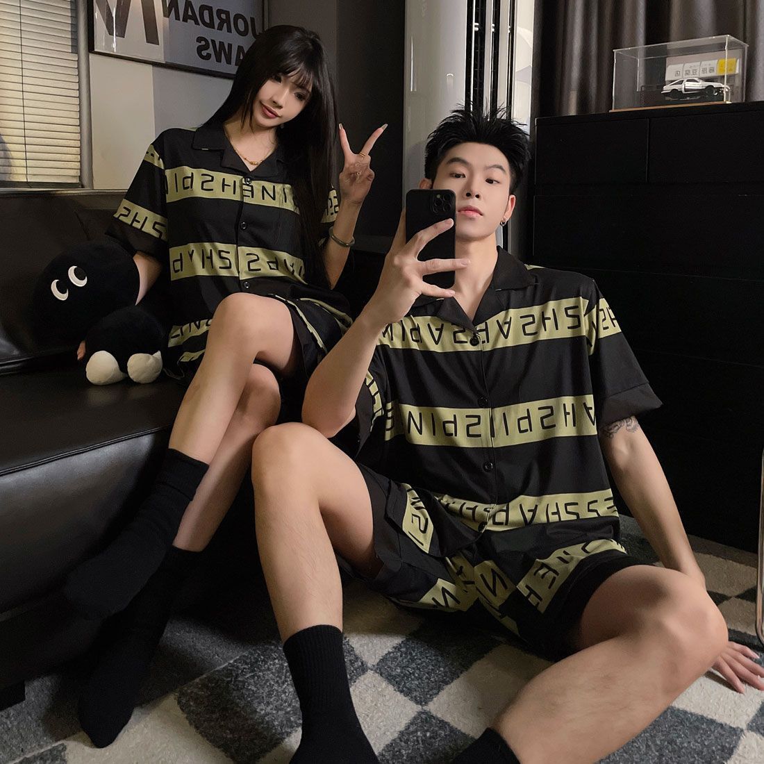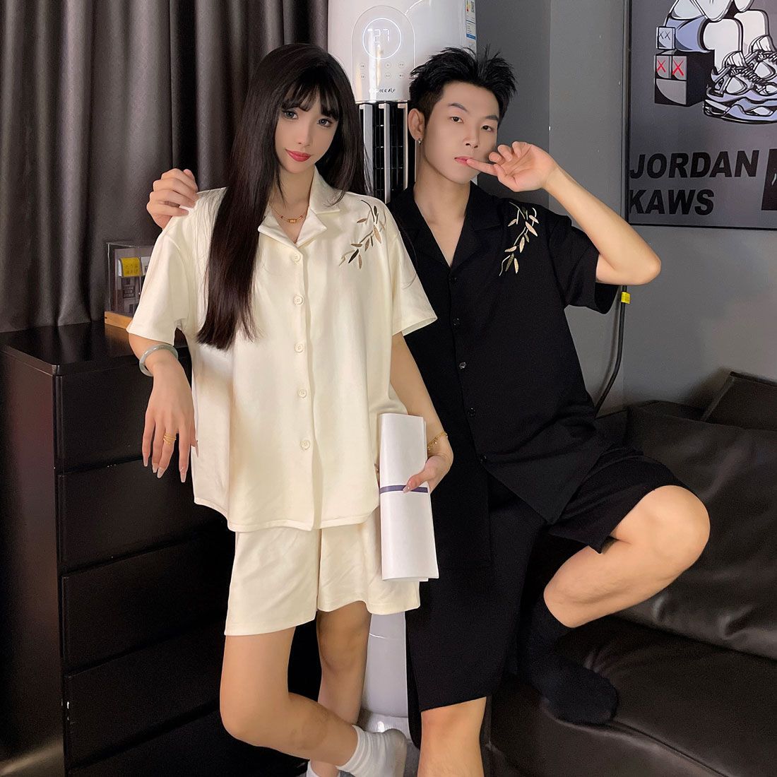 커플 잠옷 여름 코튼 남성 여성 여름 2025 새로운 반팔 반바지 캐주얼 홈웨어 세트스토어 가기