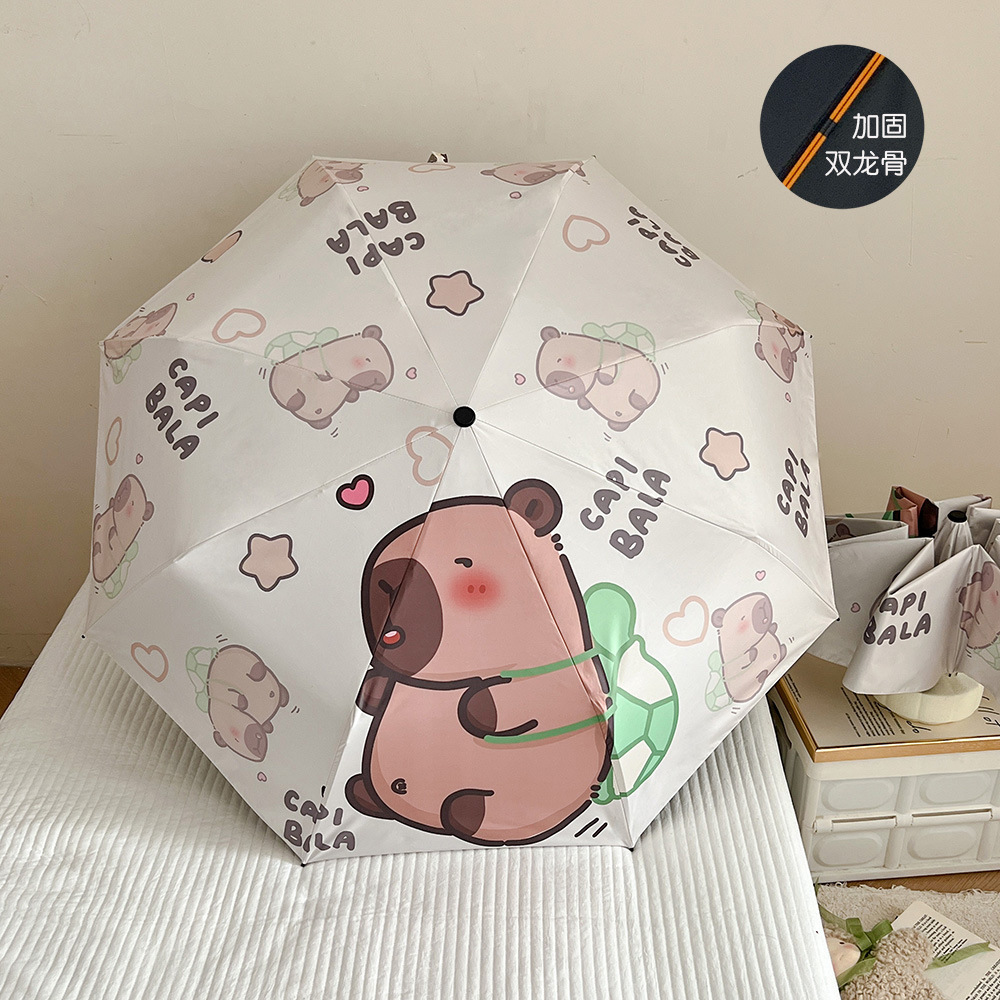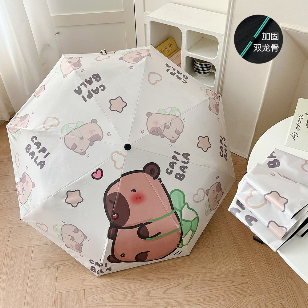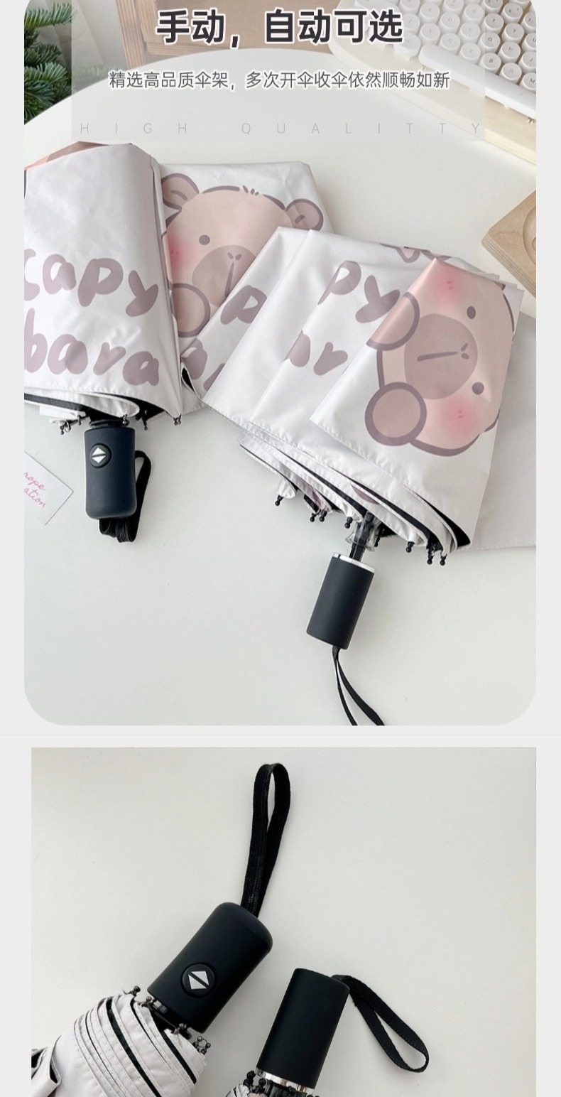 Kapi Bala 접는 우산 전체 자동 검은 접착제 선 스크린 및 비 이중 사용 우산 학생용스토어 가기
