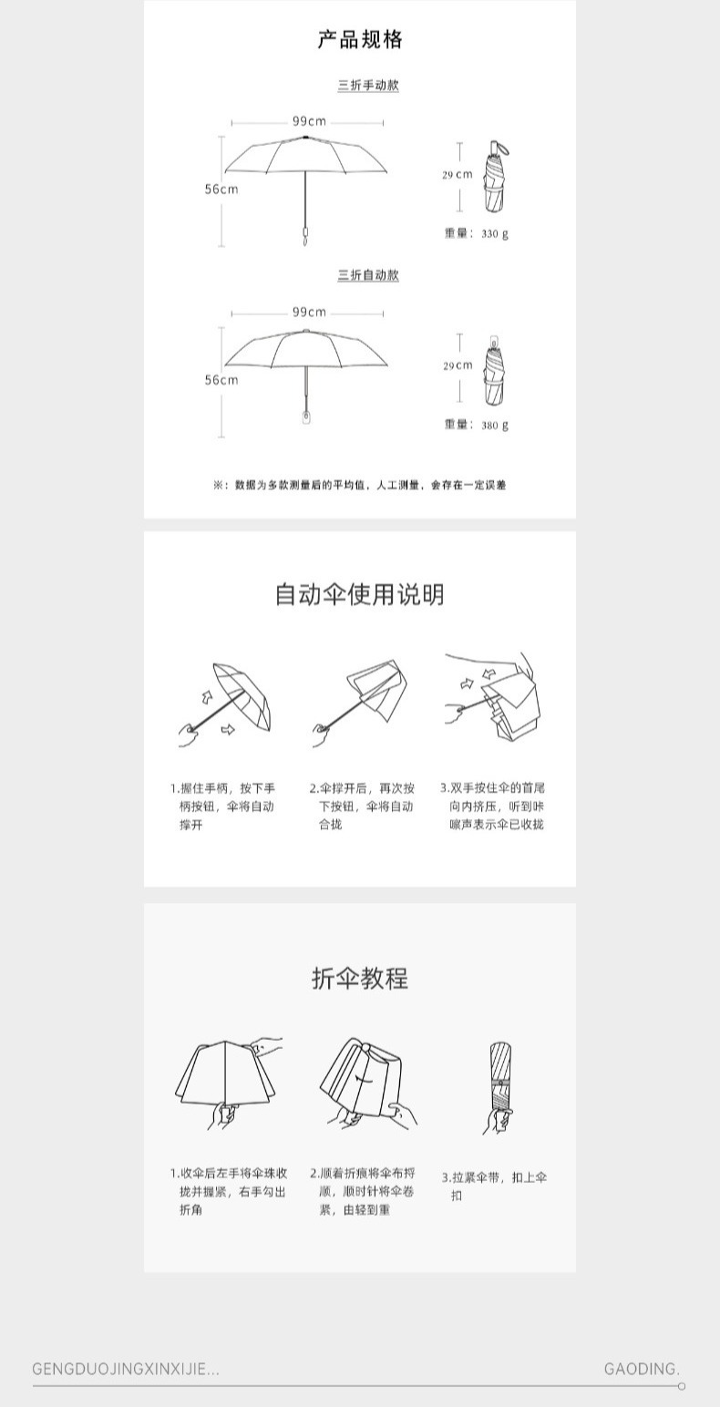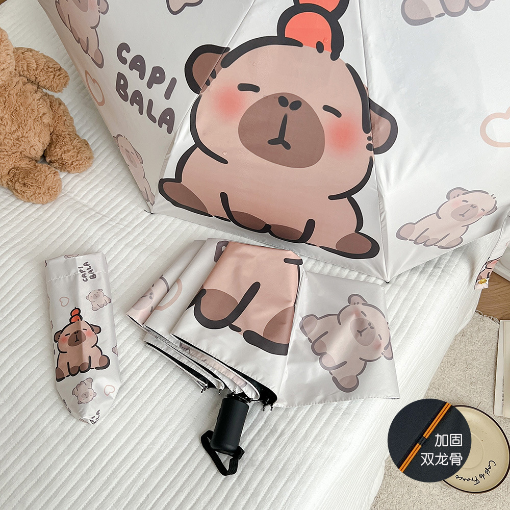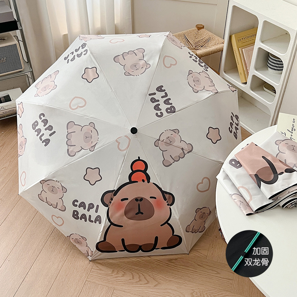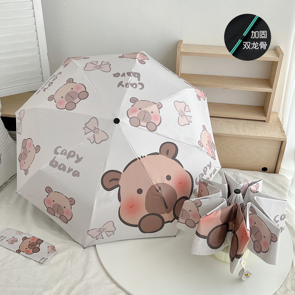 Kapi Bala 접는 우산 전체 자동 검은 접착제 선 스크린 및 비 이중 사용 우산 학생용스토어 가기