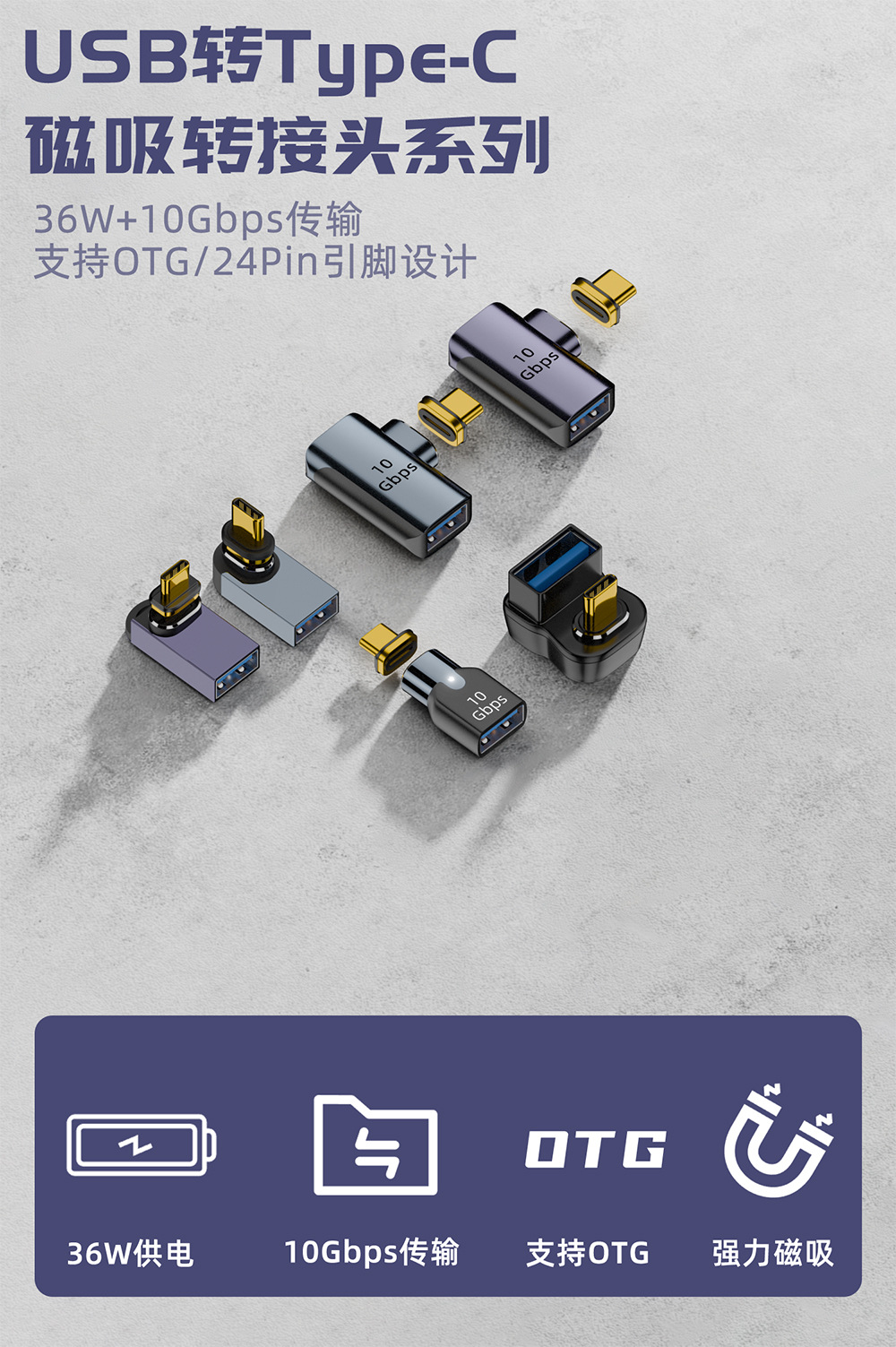 • Typec 남성-여성 측면 굽힘 자기 어댑터