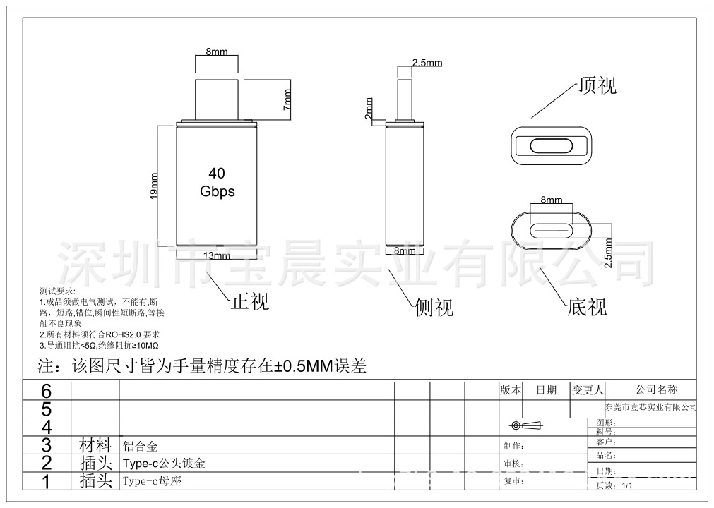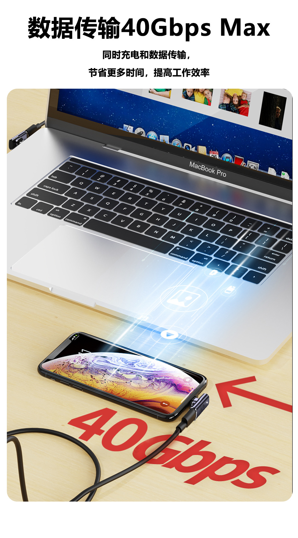 USB4 40GBps 자기 전송 헤드 노트북 태블릿 유형-c 휴대 전화 빠른 충전 어댑터