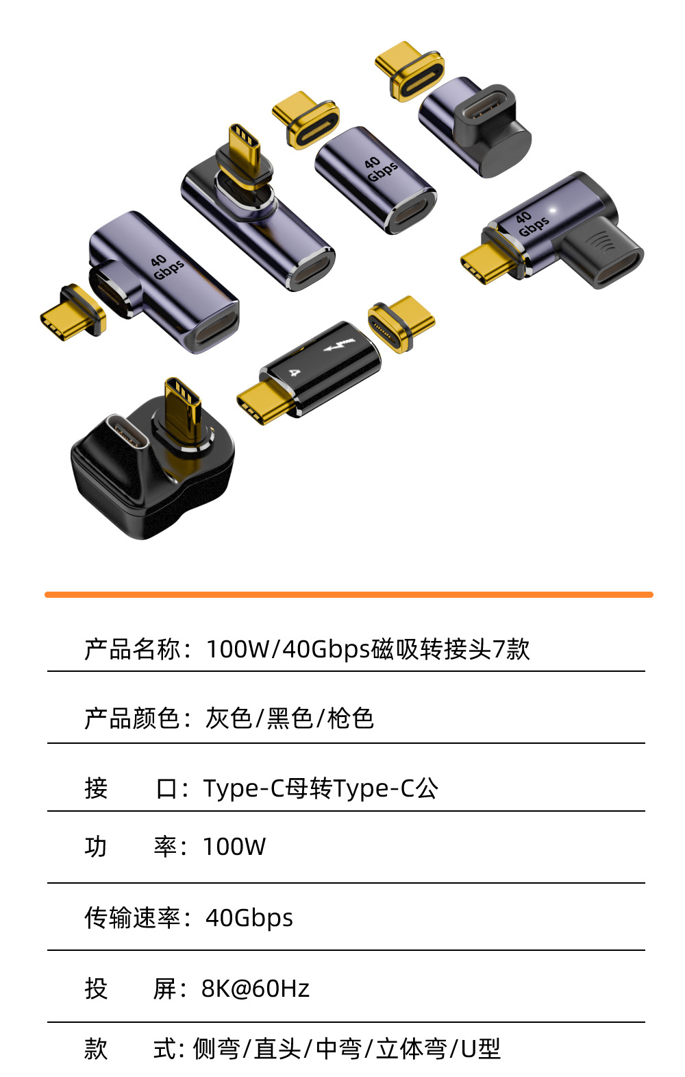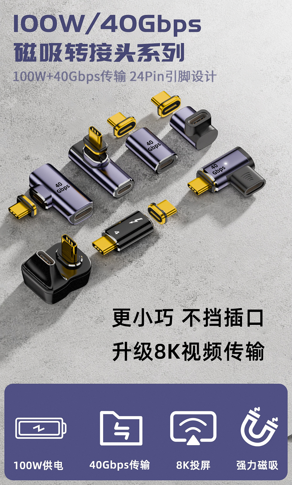 USB4 40GBps 자기 전송 헤드 노트북 태블릿 유형-c 휴대 전화 빠른 충전 어댑터스토어 가기