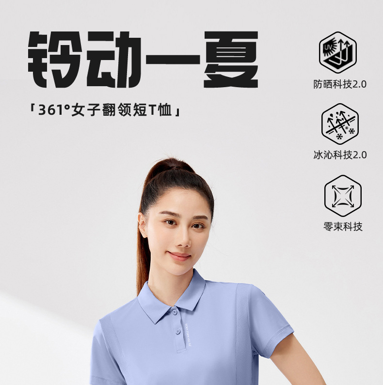 361 라펠 티셔츠 2025 여름 새로운 얼음 느낌 통기성 폴로 셔츠 여성 야외 태양 보호 스포츠 반팔스토어 가기