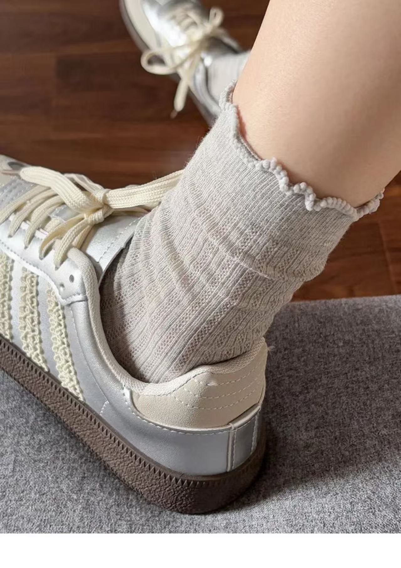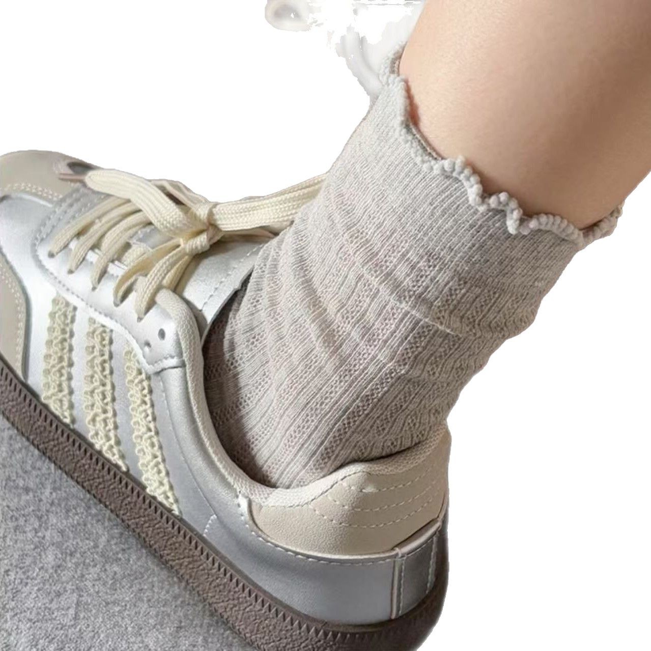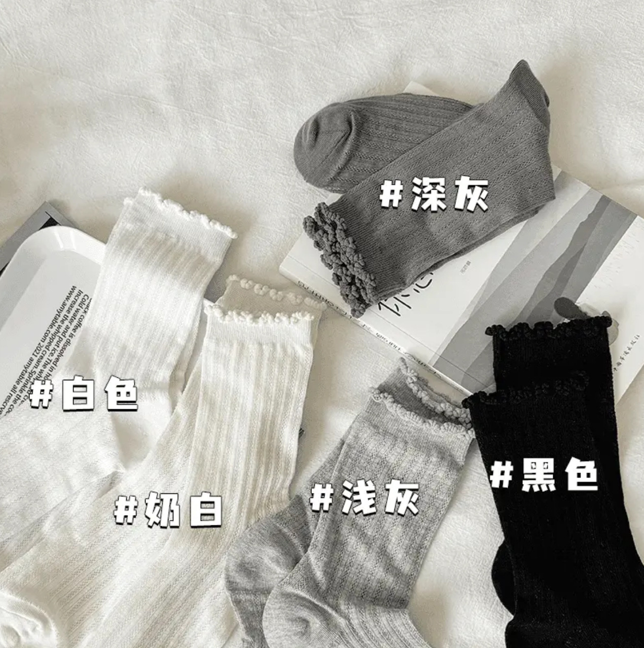한국식 Ins 유행 단색 중공 메쉬 양말 봄과 여름 얇은 간단한 소녀의 활 더미 양말
