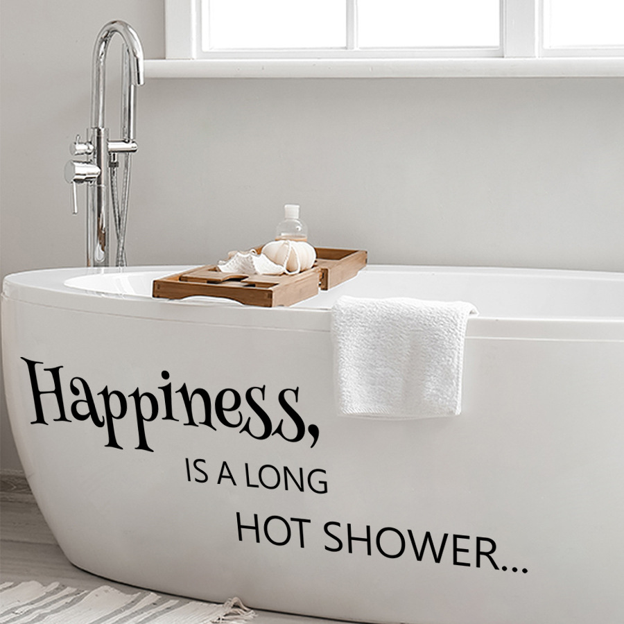 BR3701Q "행복은 뜨거운 목욕과 같습니다" 영어 문구 자체 접착 벽 스티커 욕실 화장실 장식 스티커스토어 가기