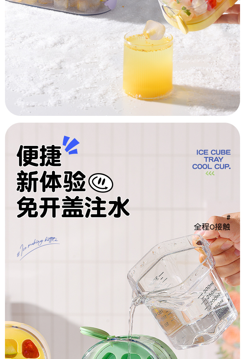 새로운 얼음 주전자 2 대 1 누르는 물 주입 얼음 금형 얼음 유물 휴대용 짚 컵을 들고 높은 색상