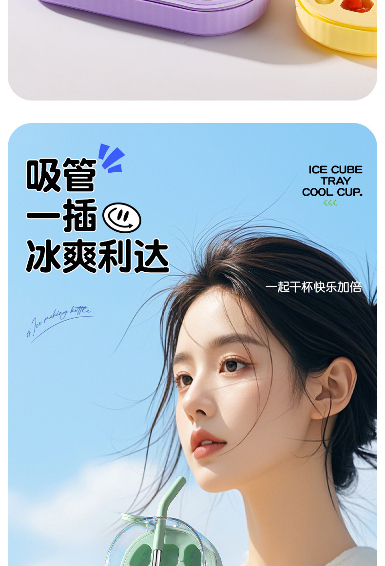 새로운 얼음 주전자 2 대 1 누르는 물 주입 얼음 금형 얼음 유물 휴대용 짚 컵을 들고 높은 색상스토어 가기