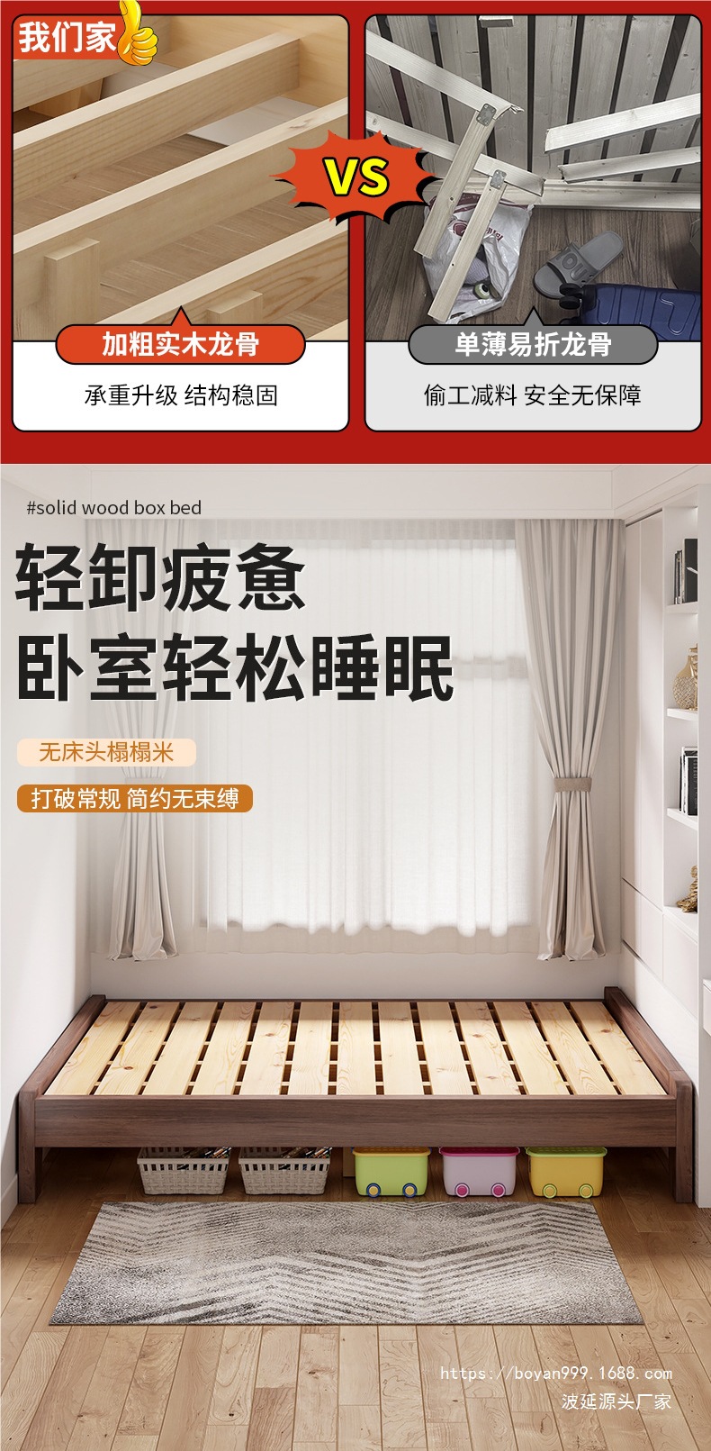 원목 침대 다다미 침대 프레임 헤드보드 없는 스타일의 랙베드 12/35/5/ 8m 등받이 없는 싱글 침대 주문 가능
