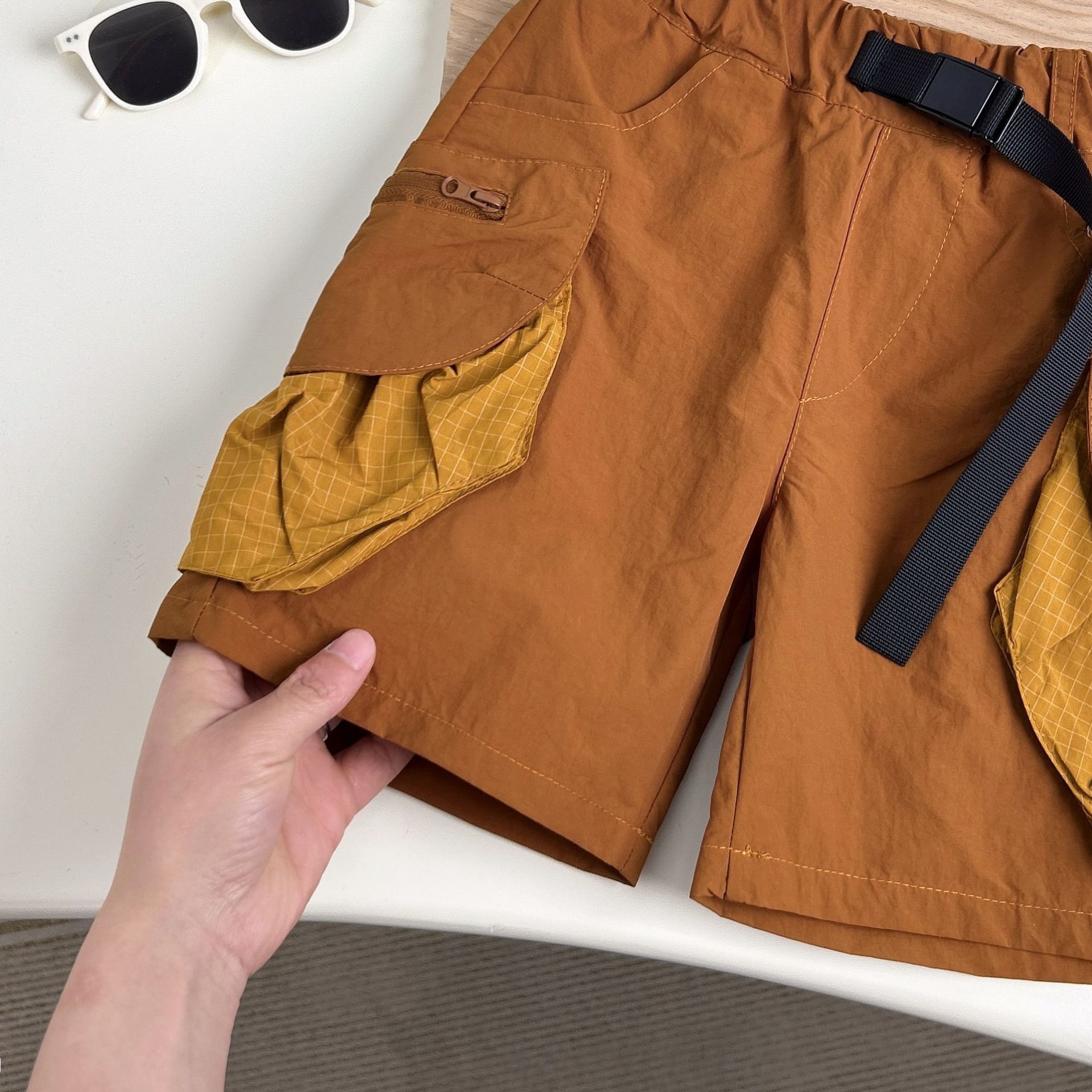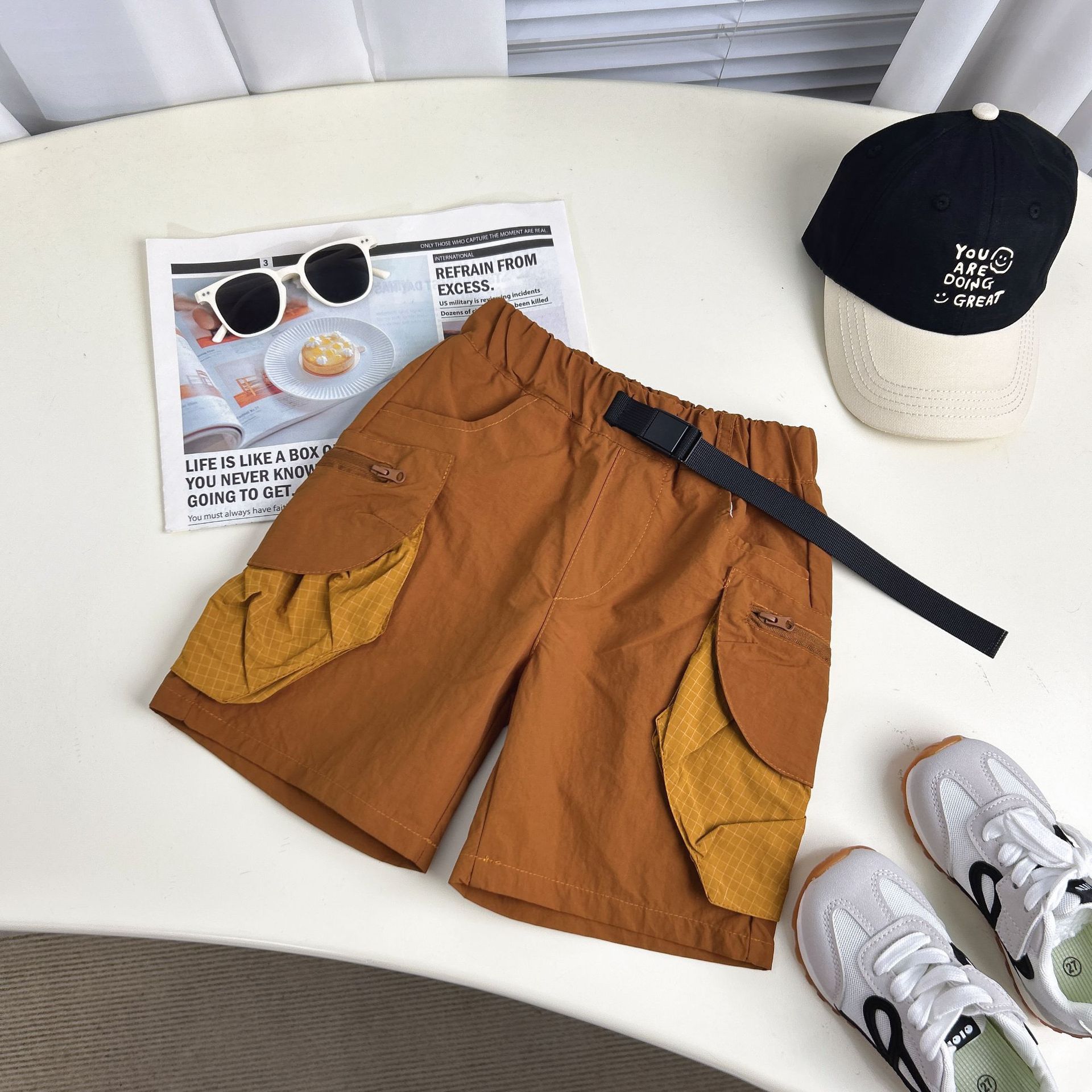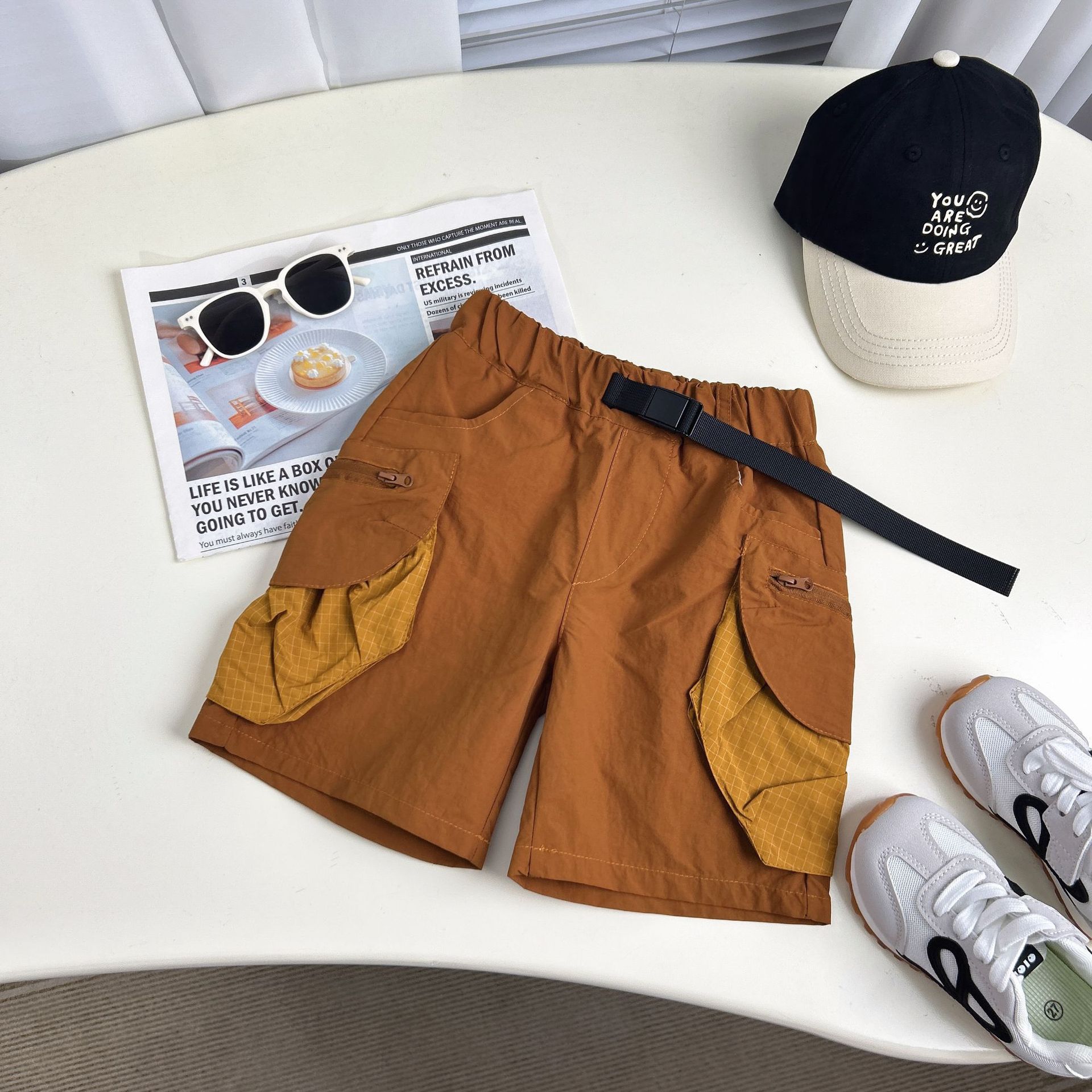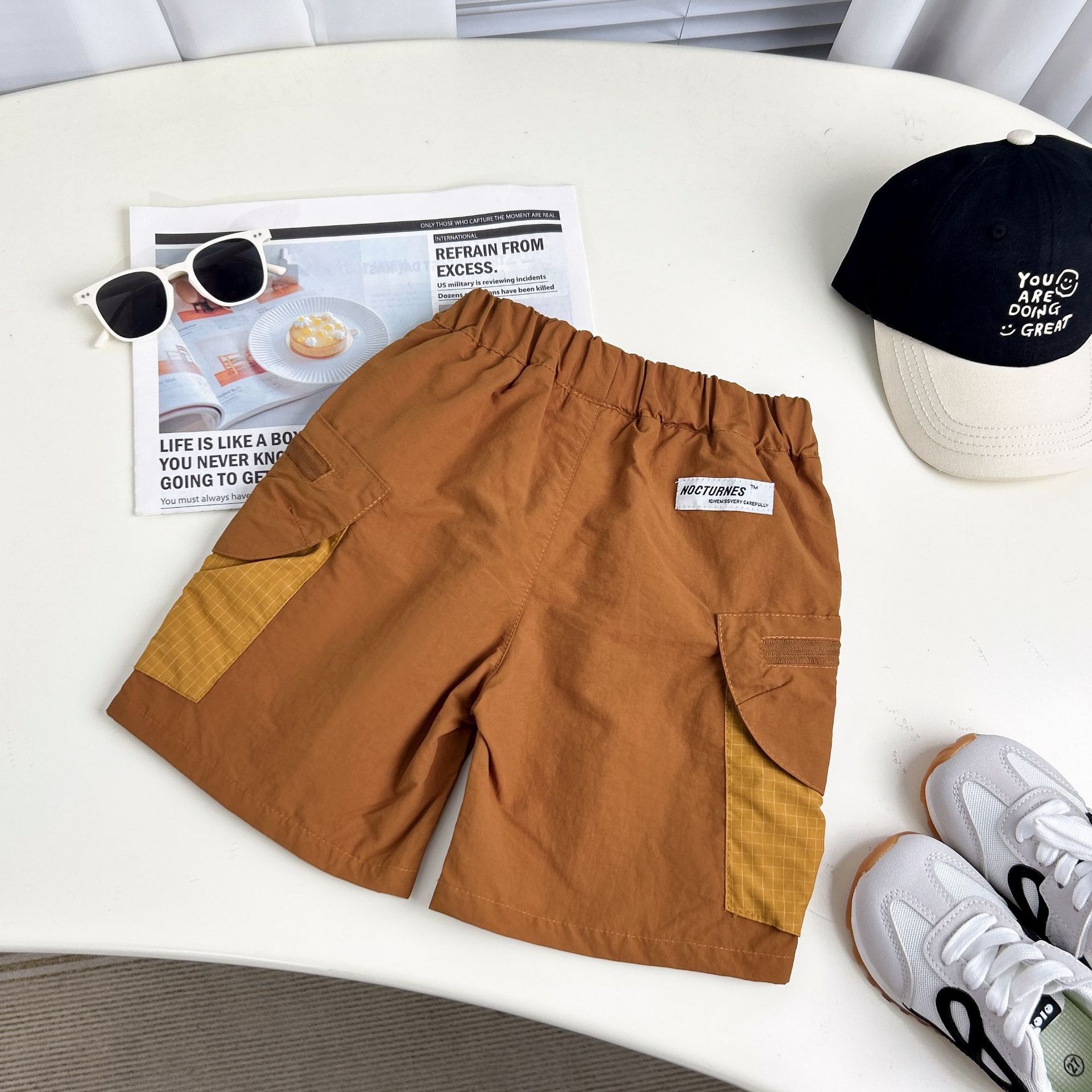 트렌디 한 브랜드 어린이 작업복 반바지 여름 2025 새로운 한국식 중간 바지 소년 5 점 바지 서양식 중소형 어린이 바지