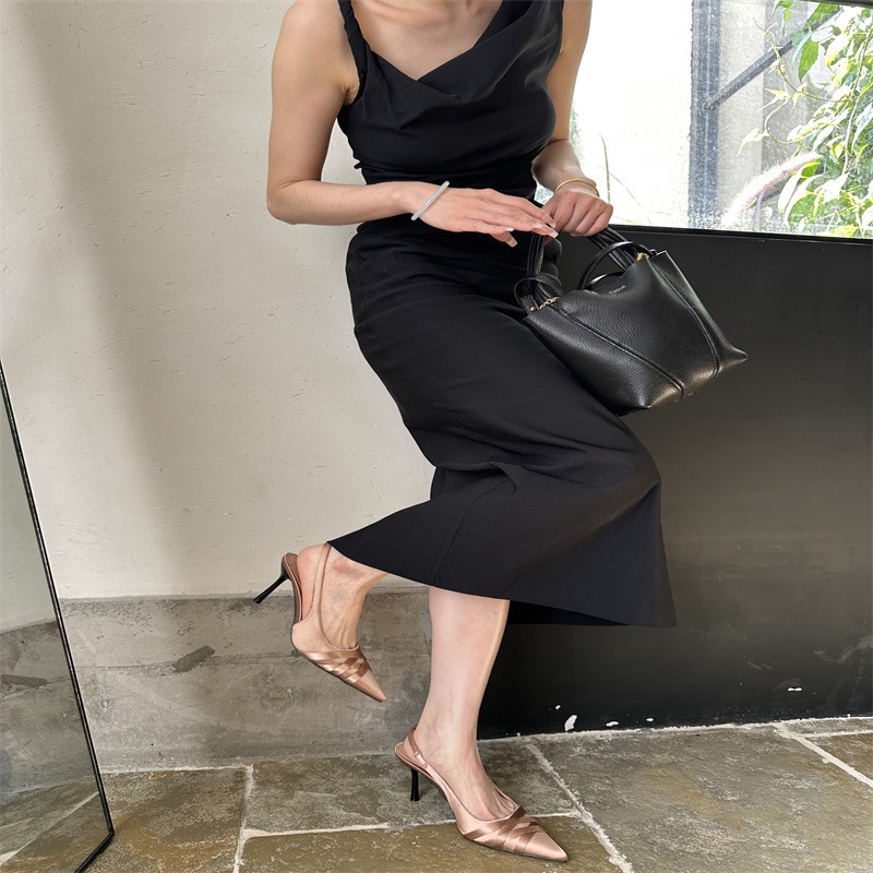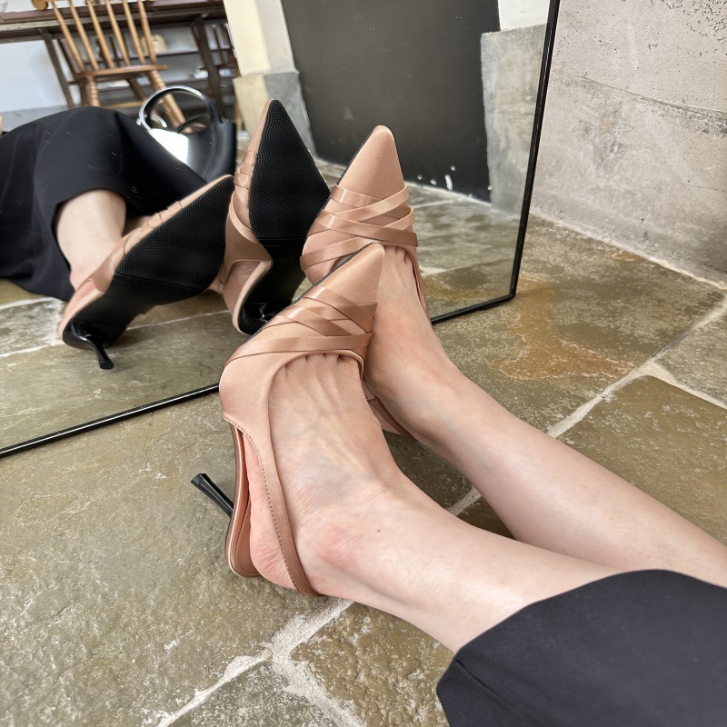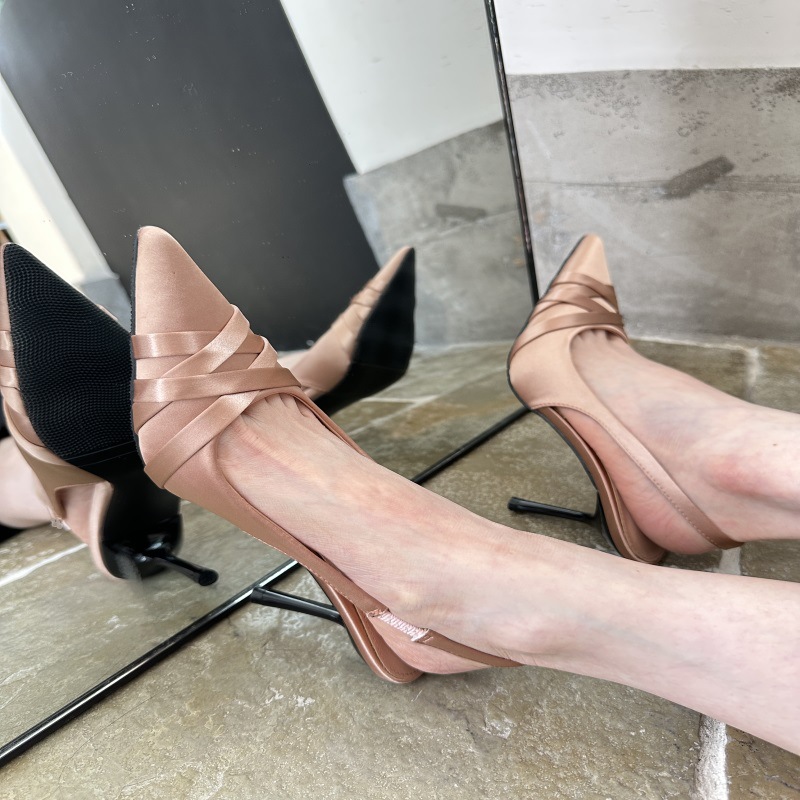 니치 프렌치 하이힐, 스틸레토 토캡 샌들, 페어리 슈즈, 2025 봄 여름 기질 새틴 실버 슈즈스토어 가기