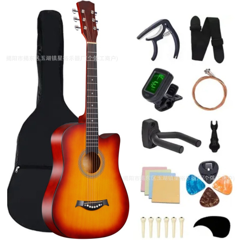 국경 독점 기타 패키지 38 인치 어쿠스틱 기타 초보 연습 피아노 공장 재고 도매 기타스토어 가기