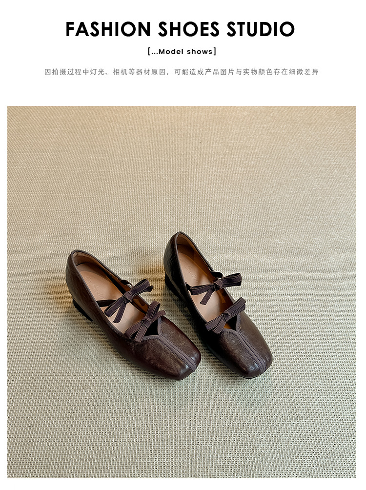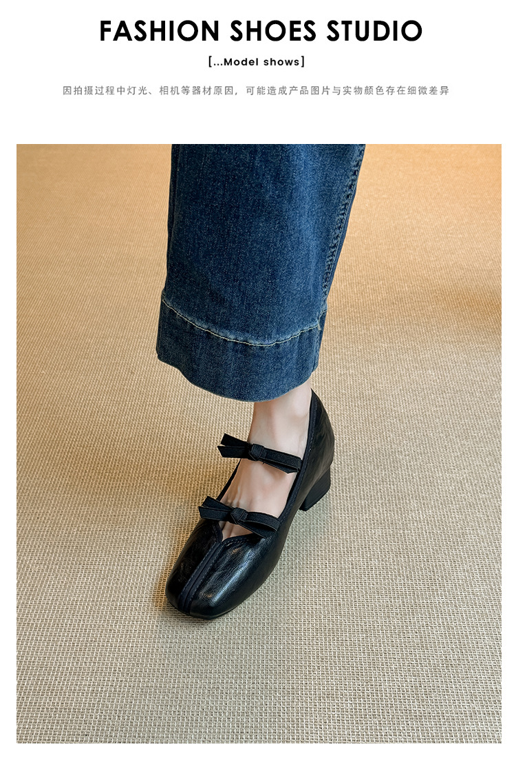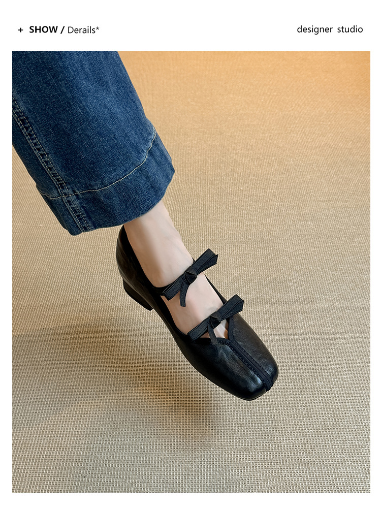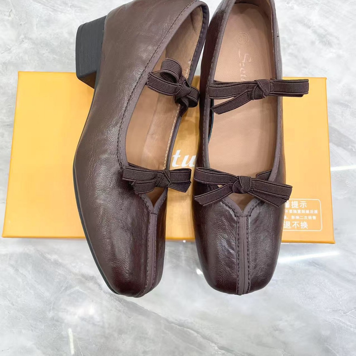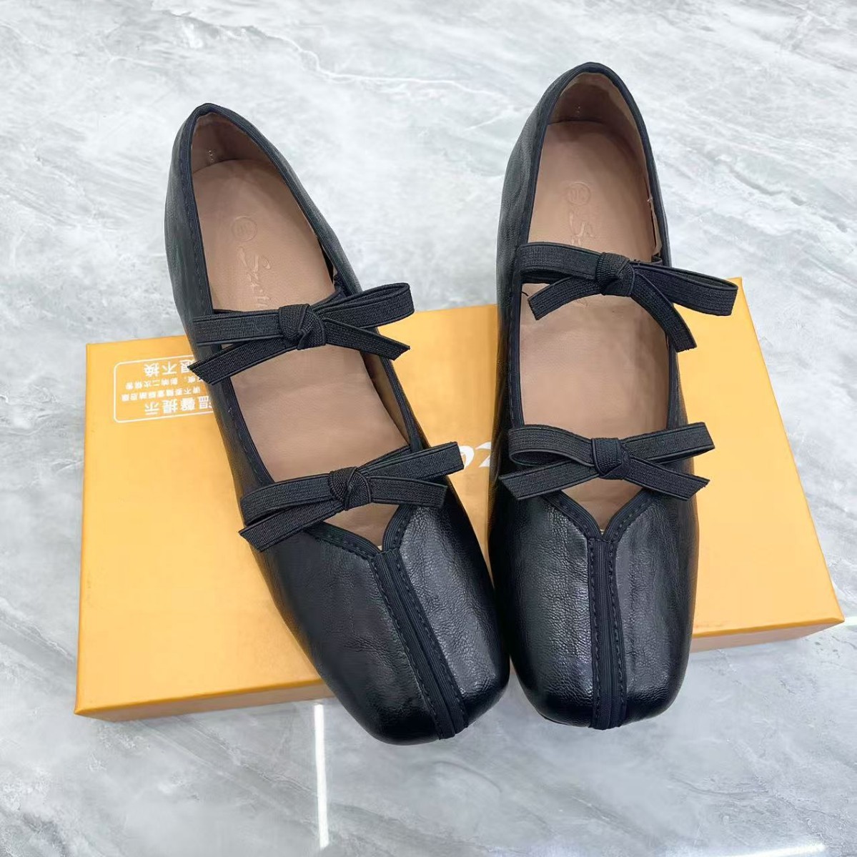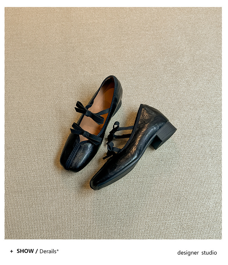 2187-23 스커트와 레트로 리본이 달린 여성용 부드러운 밑창의 피곤하지 않은 프렌치 발레 슈즈, 내부 높이가 높아지는 메리 제인 슈즈