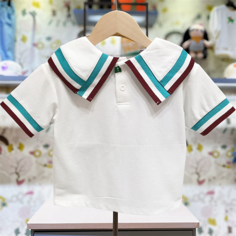 여름 새로운 소년 소녀 네이비 칼라 반팔 티셔츠 화이트 탑 외국 스타일 MS541106