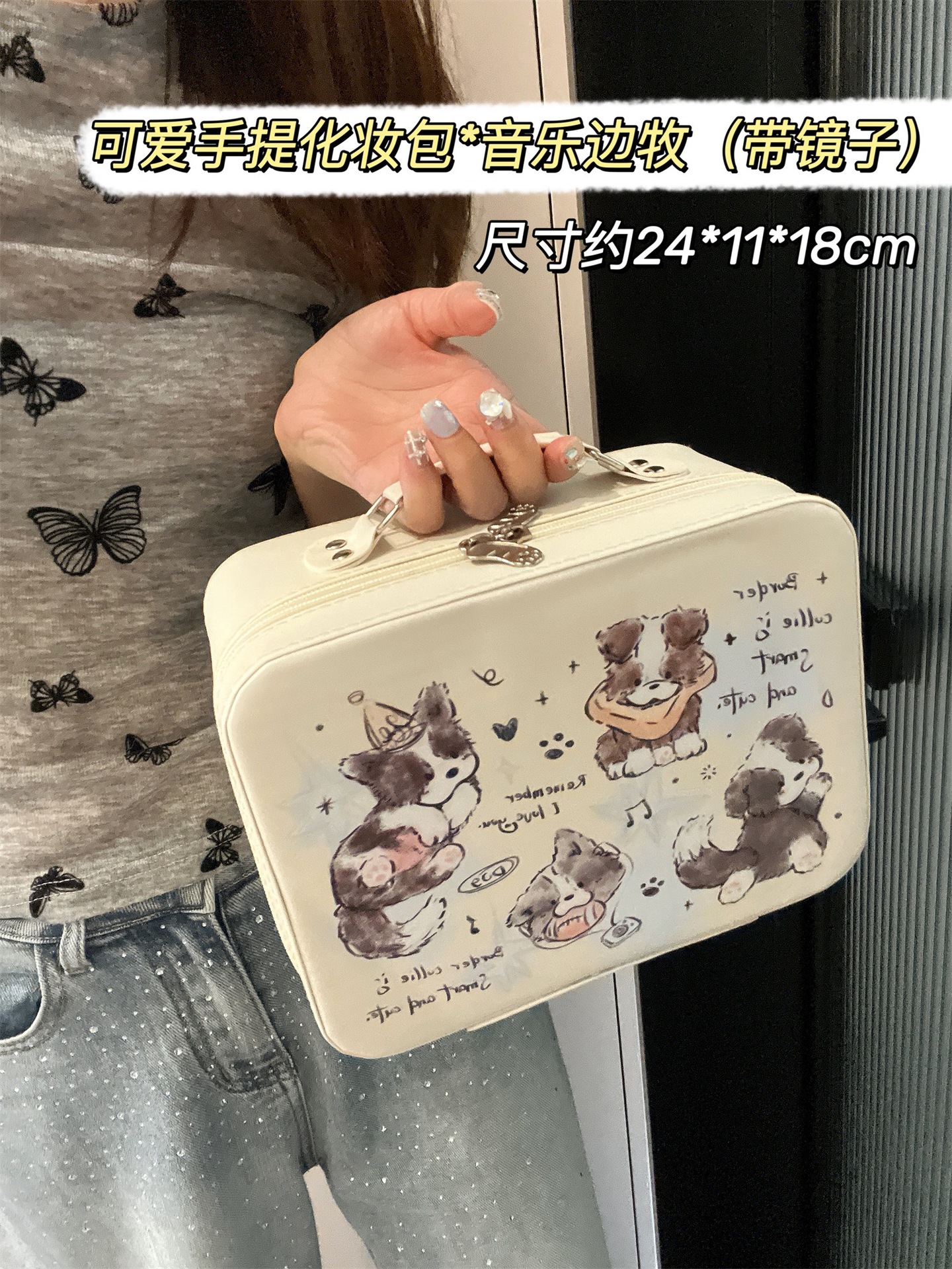 • 귀여운 휴대용 화장품 가방*뮤직 보더 콜리(거울 포함)