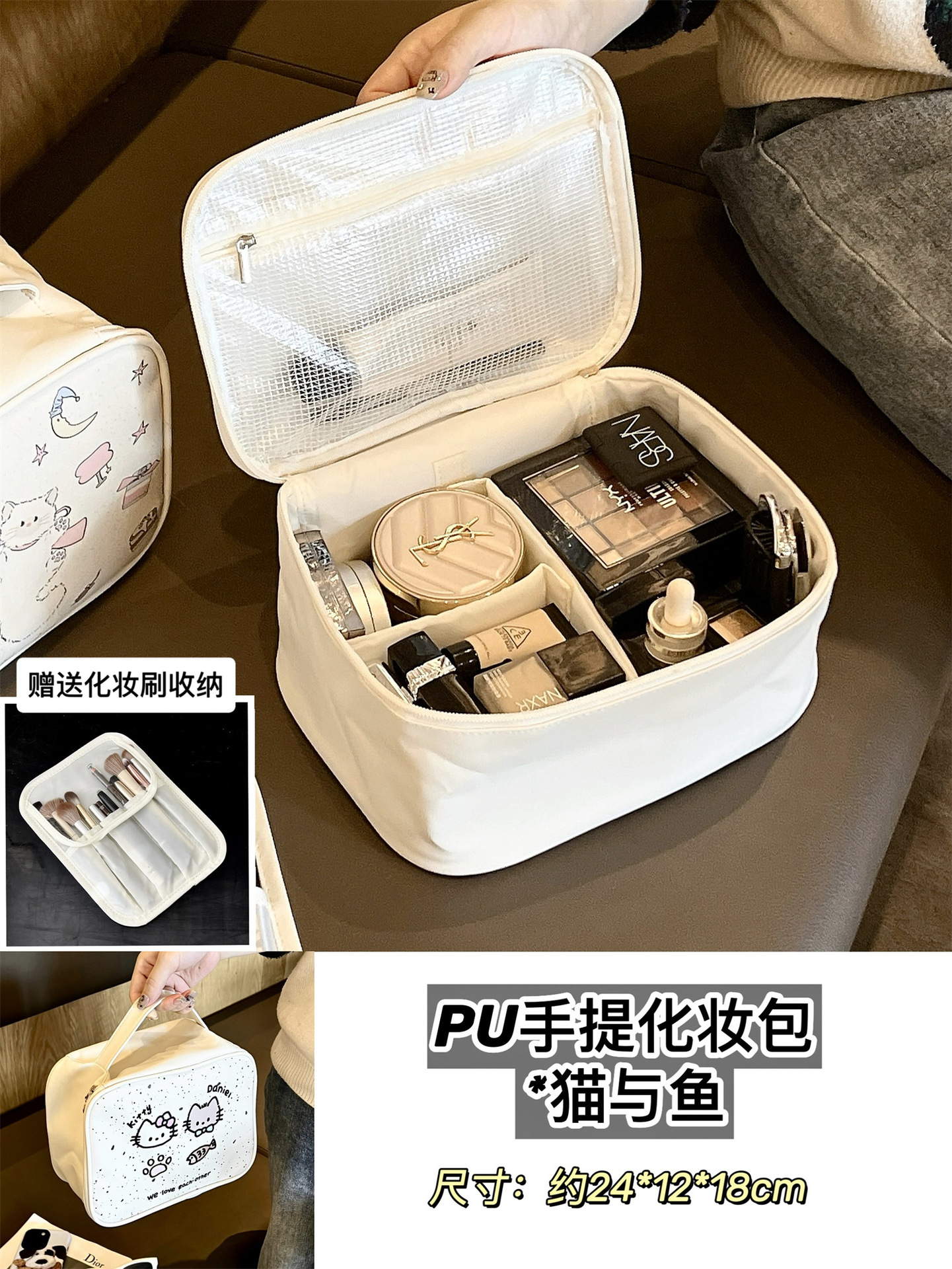 • PU 휴대용 화장품 가방*스プリング캣 [대용량 방수/칸막이 수납]