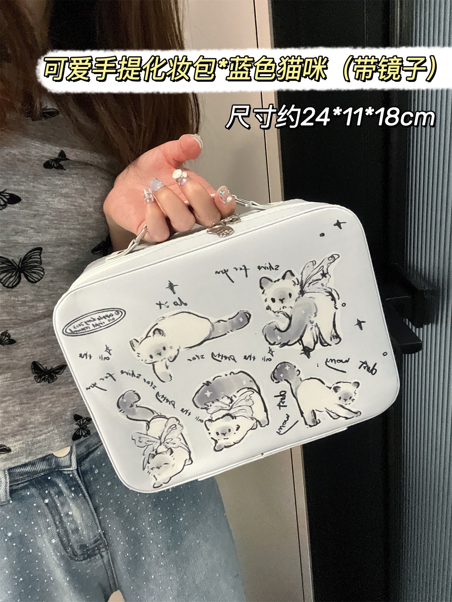 • 귀여운 휴대용 화장품 가방*파란 고양이(거울 포함)