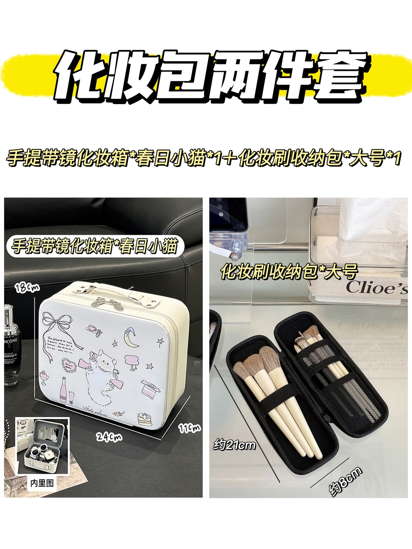 • 조합 [화장품 케이스 * 귀여운 새끼 고양이 + 메이크업 브러쉬 보관 가방]