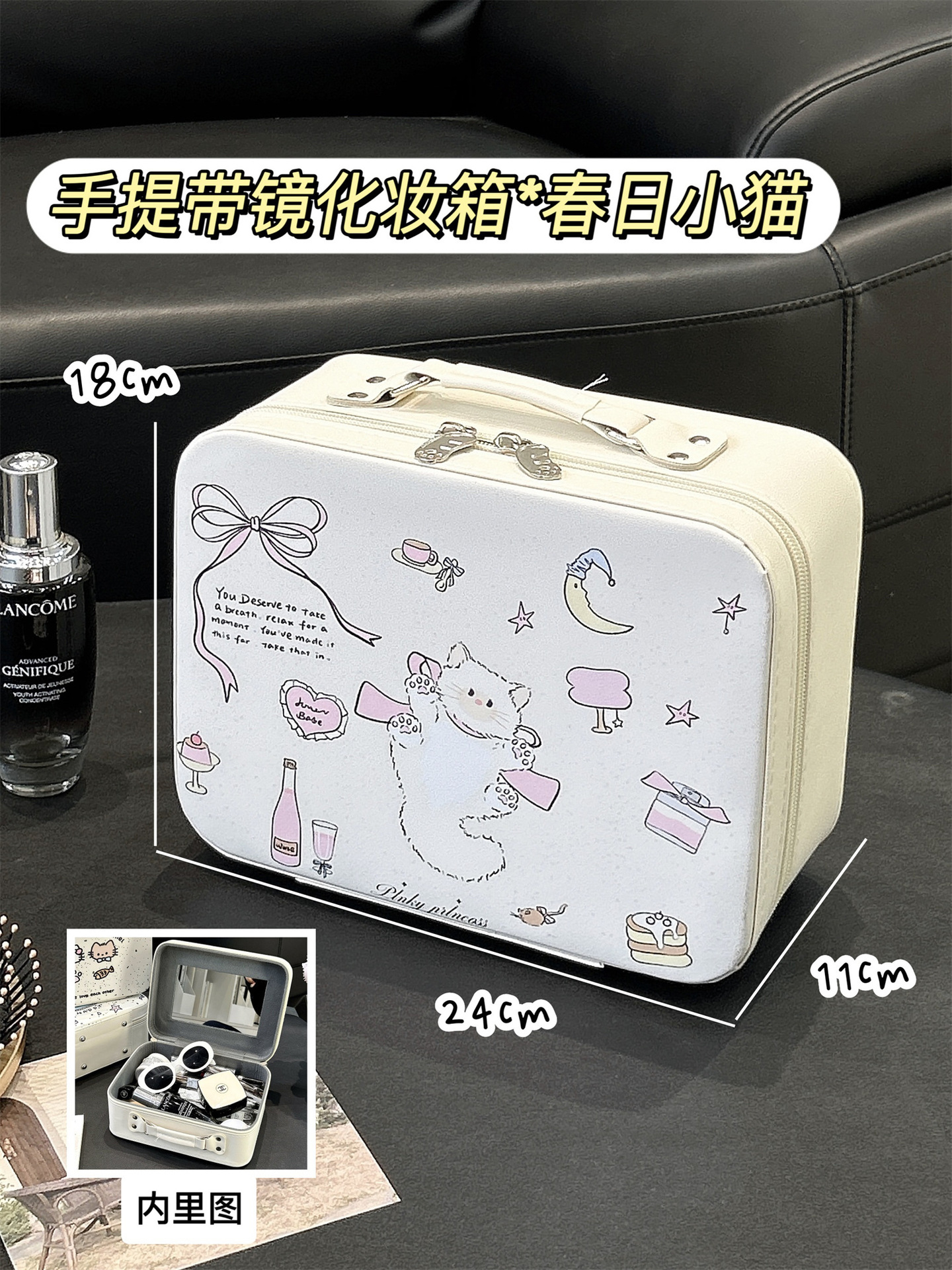 • 손잡이와 거울이 달린 화장품 케이스*스프링 키튼(거울 포함)