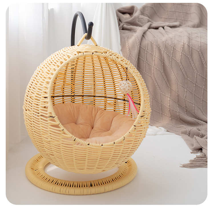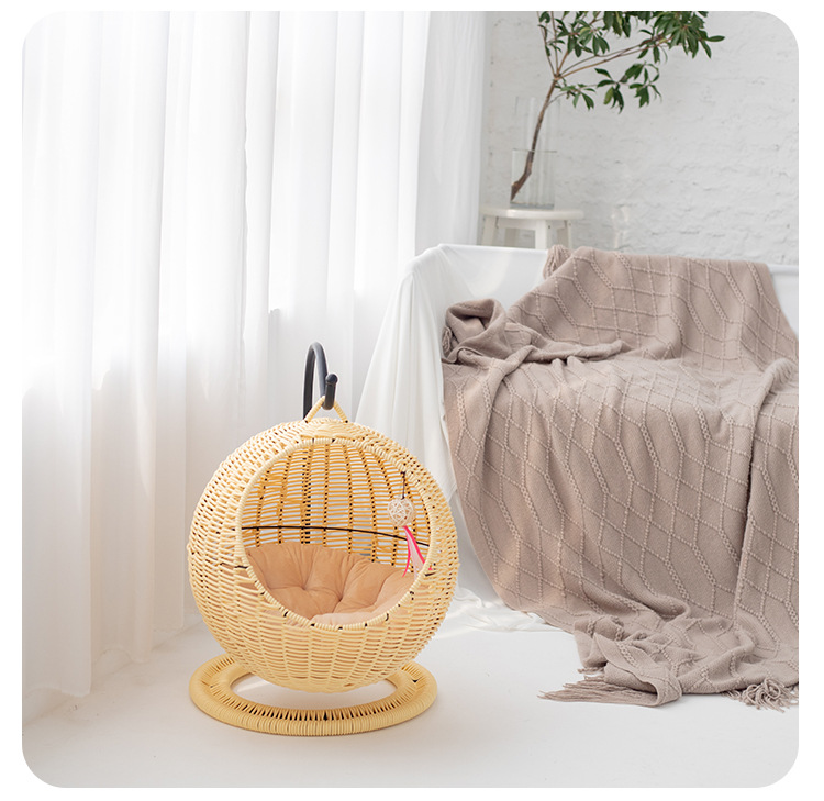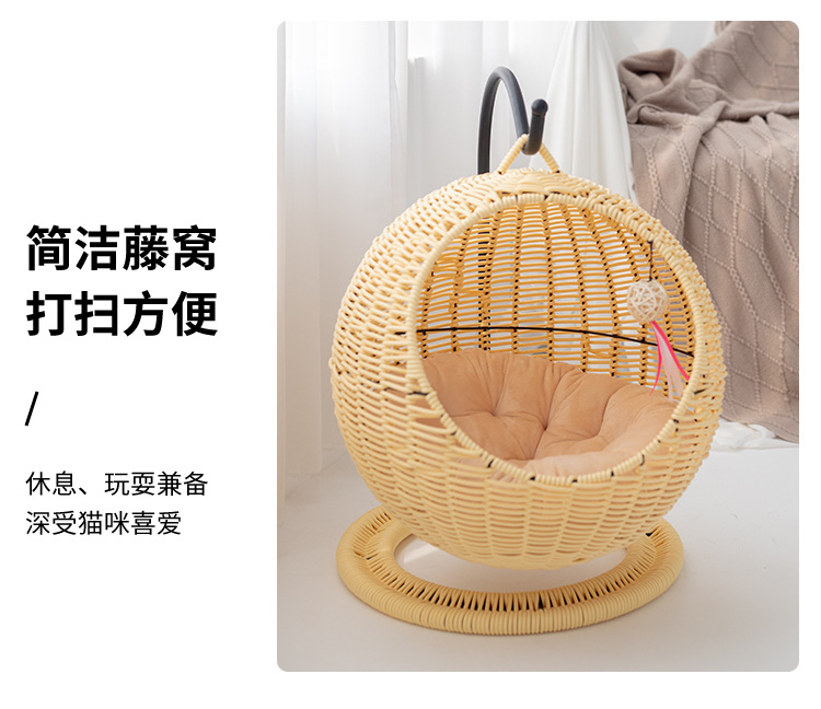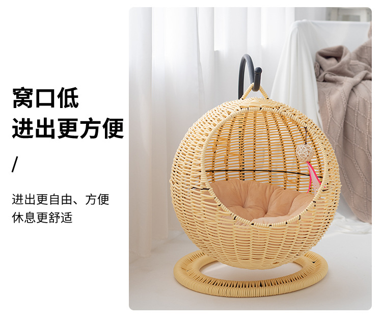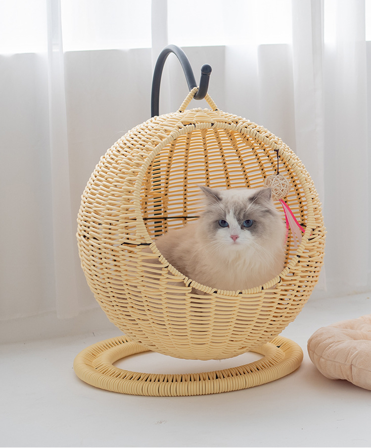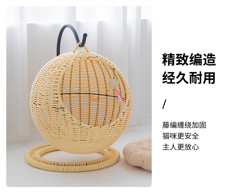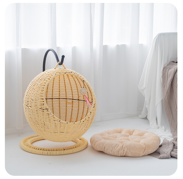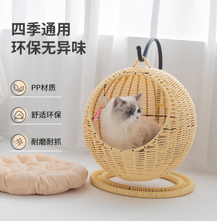인터넷 인기 반폐쇄형 애완동물 해먹 고양이 집 고양이 케이지 원형 고양이 침대 바구니 라탄 여름 고양이 특허 제품스토어 가기