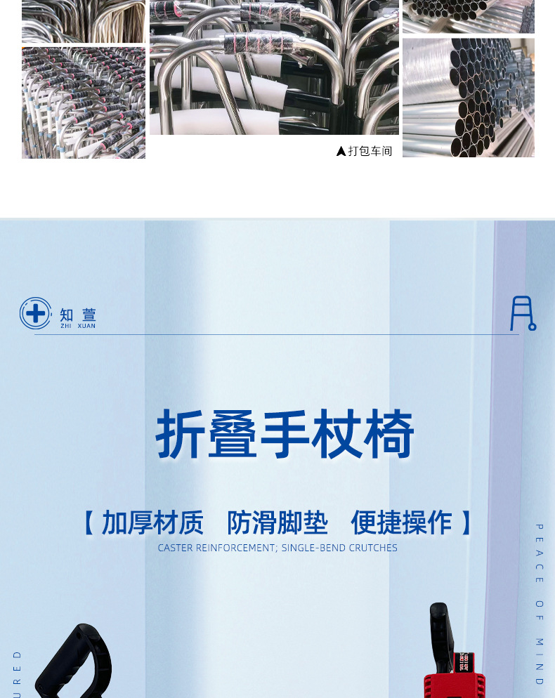 국경 간 새로운 다기능 접이식 지팡이 의자 경량 미끄럼 방지 노인 야외 이중 목적 접이식 지팡이 의자