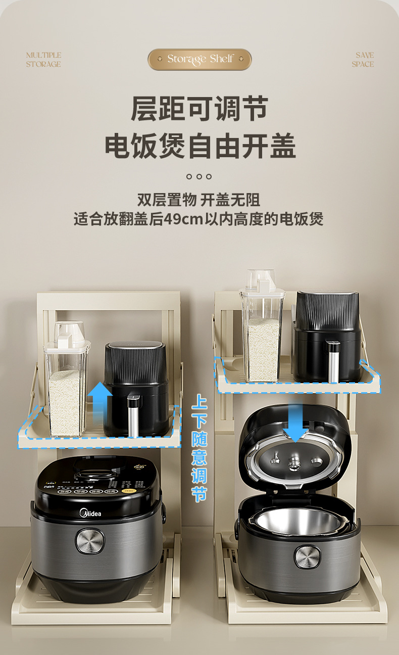 펀치없는 가정용 주방 보관 랙 다층 냄비 저장 랙 두꺼운 밥솥 공기 프라이어 랙