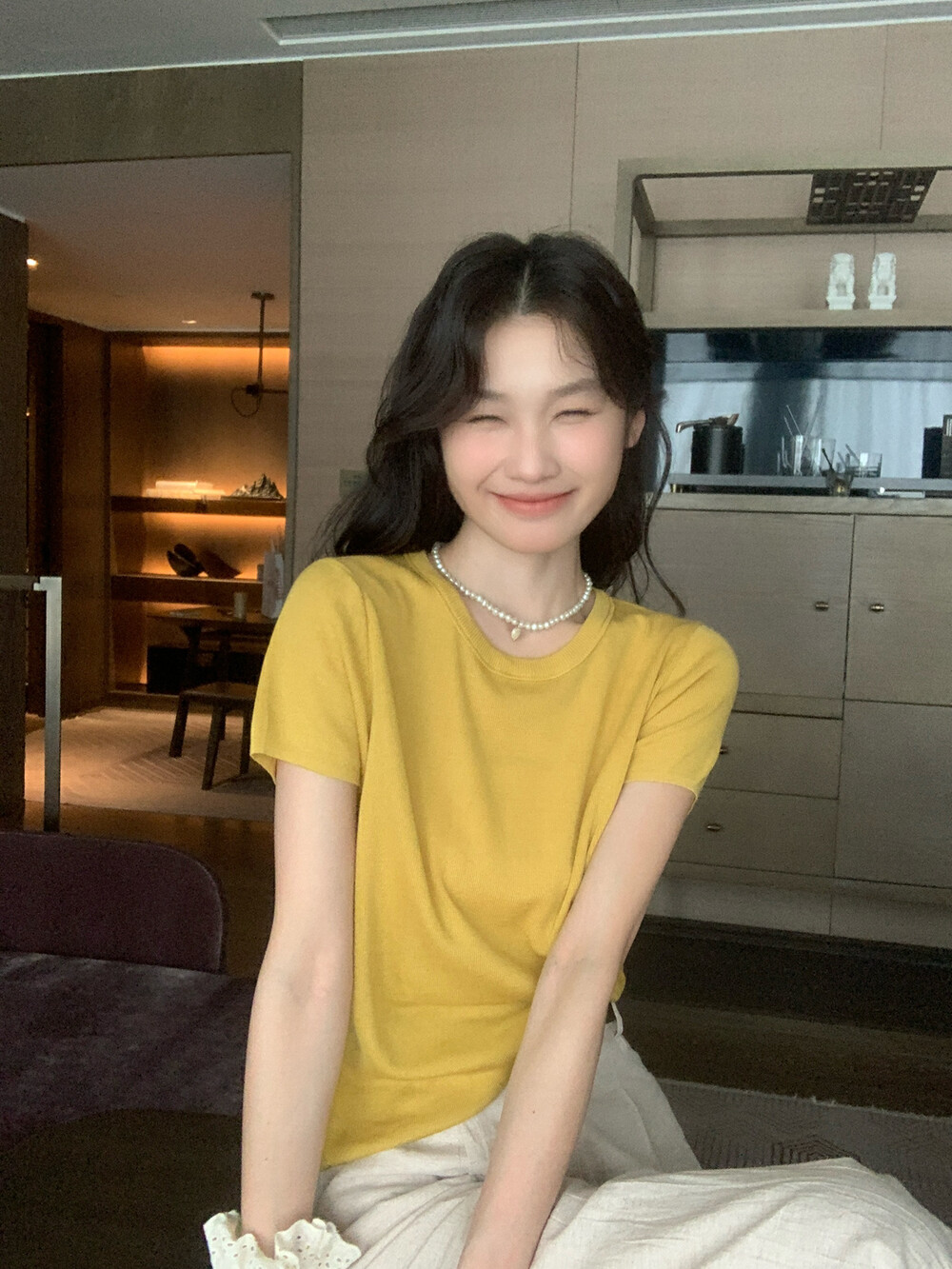 재고정리 무반품 심플하고 다재다능한 반팔 니트 여성용 2025 여름 신상품 우아한 루즈핏 캐주얼 상의