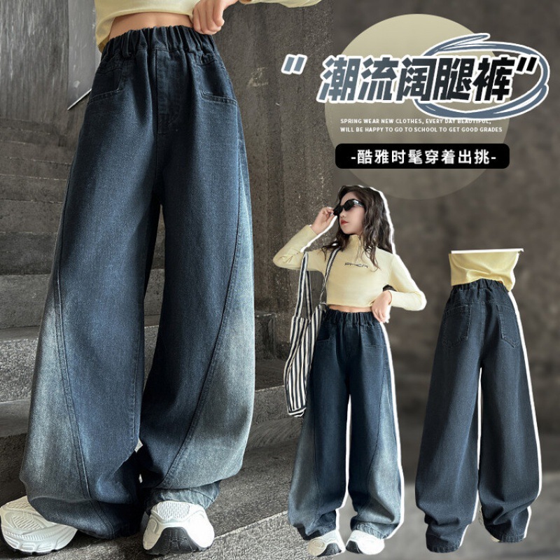 어린이 서양 스타일 2024 넓은 다리 바지 어린이 청바지 유행 국경 새 소녀의 가을 바지스토어 가기