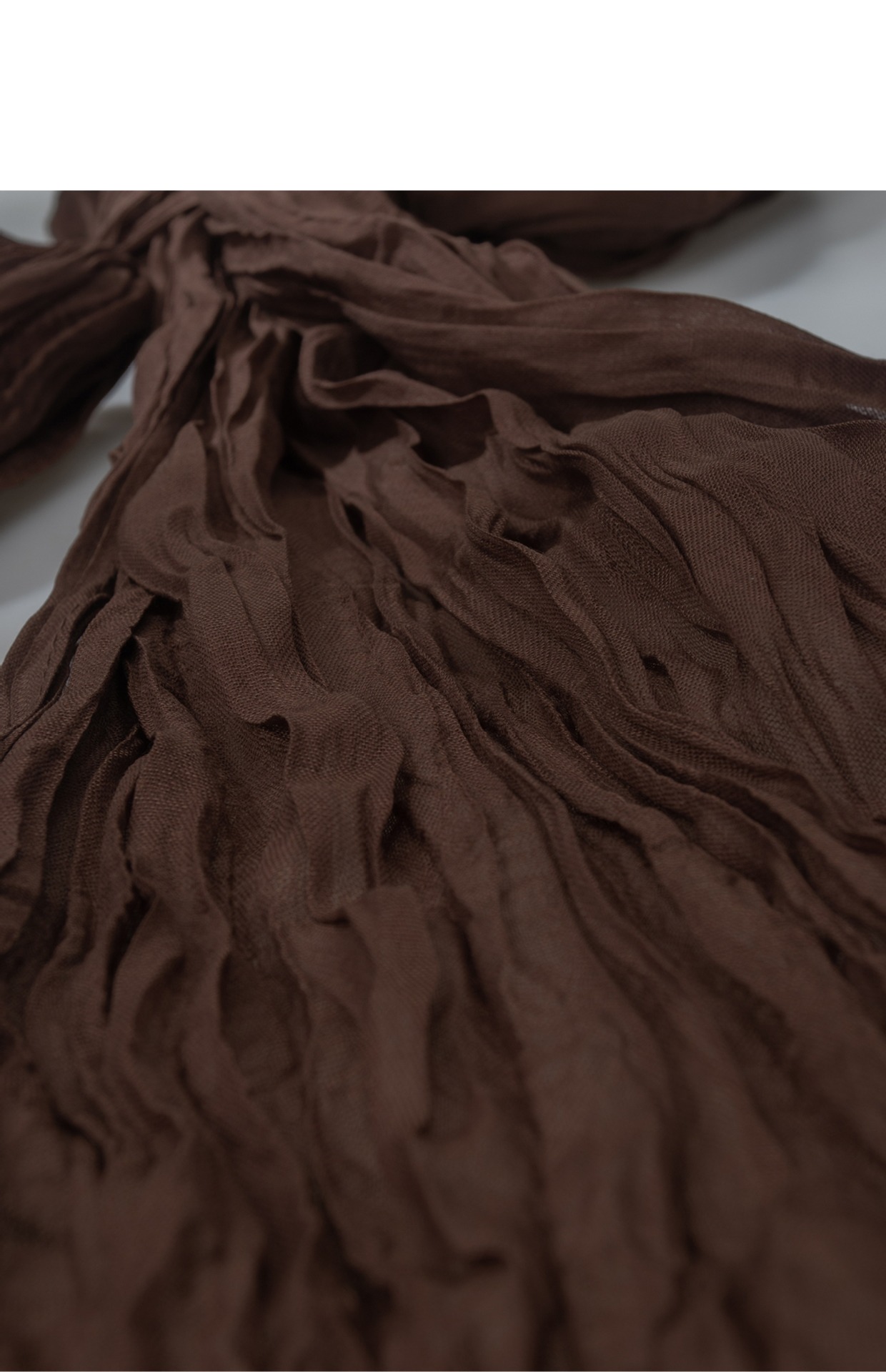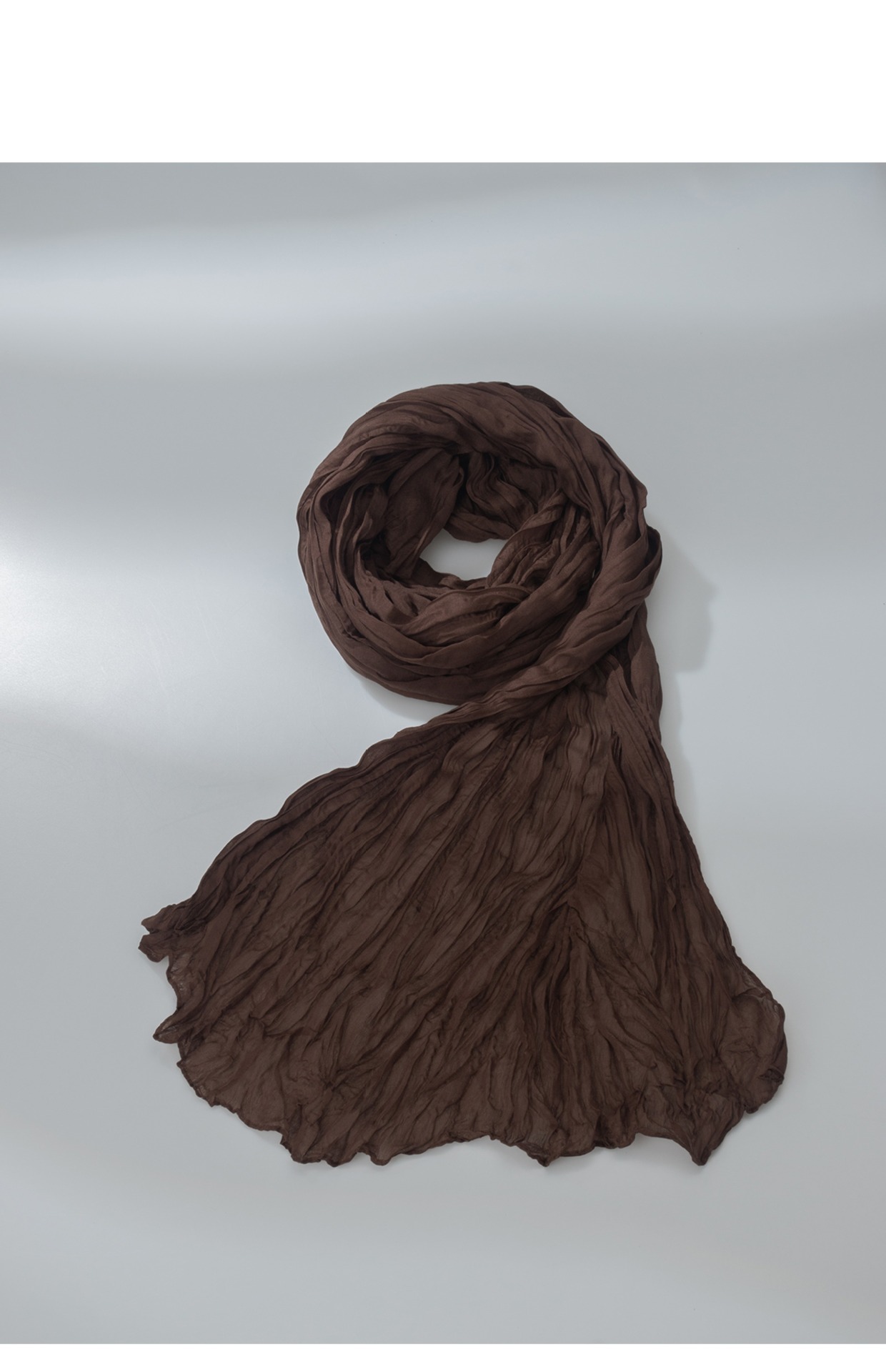 빈티지 코튼 및 리넨 스카프 여성의 2025 년 봄과 여름 예술 다크 브라운 고대 주름 선 스크린 스카프 목 높은 수준의 분위기 감각