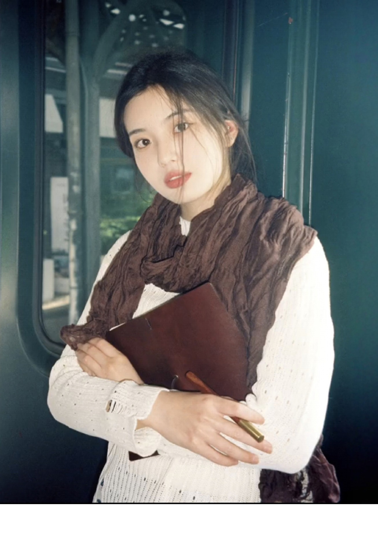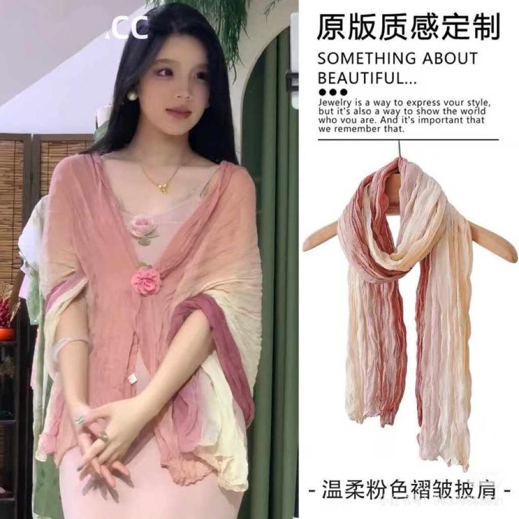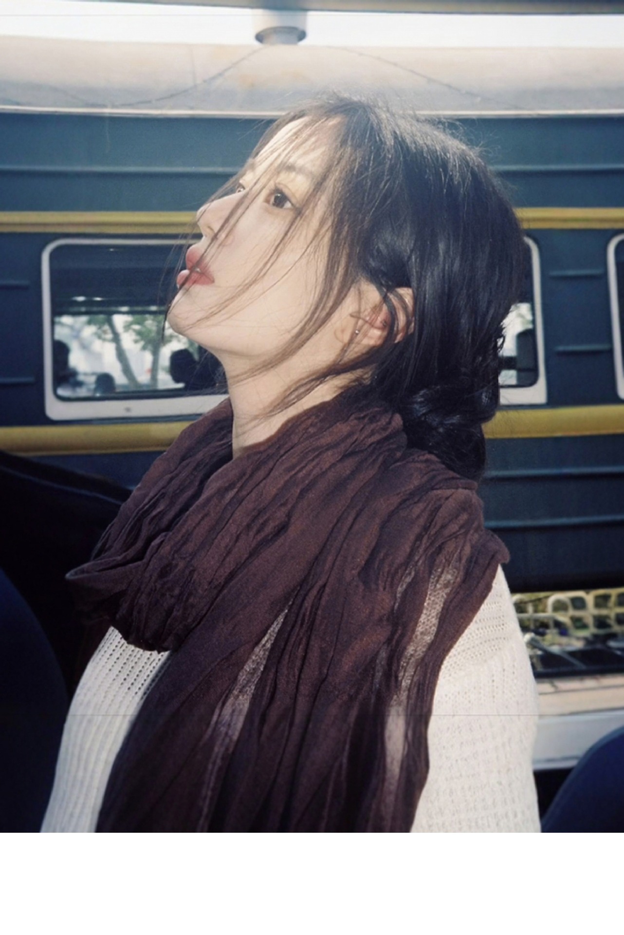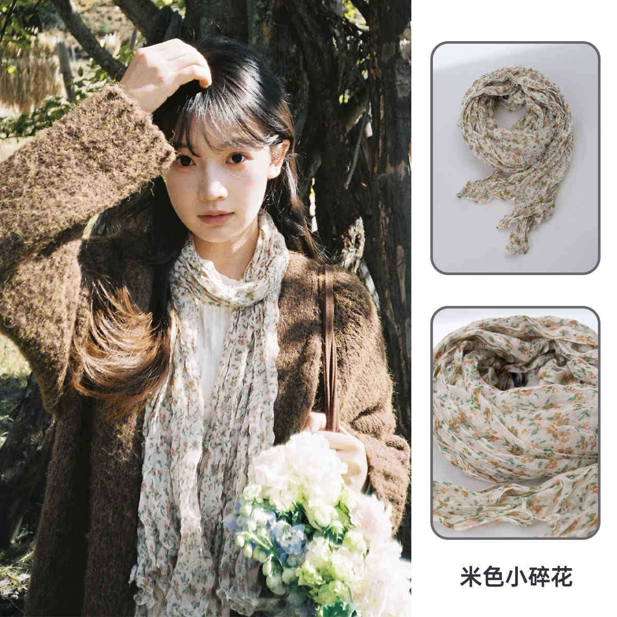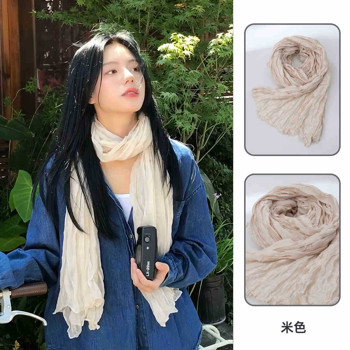 빈티지 코튼 및 리넨 스카프 여성의 2025 년 봄과 여름 예술 다크 브라운 고대 주름 선 스크린 스카프 목 높은 수준의 분위기 감각스토어 가기