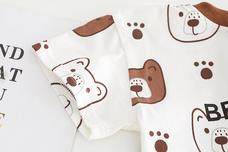 소년 여름 정장 2025 새로운 아기 스타일 여름 발자국 곰 반팔 작업복 어린이 투피스 세트