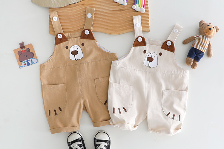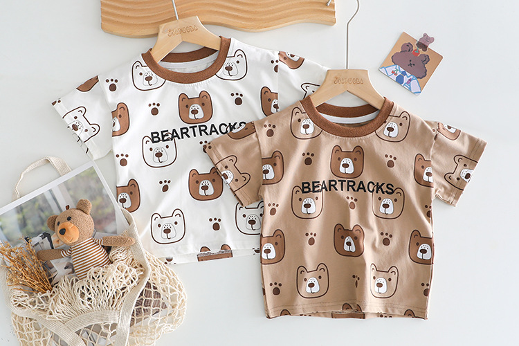소년 여름 정장 2025 새로운 아기 스타일 여름 발자국 곰 반팔 작업복 어린이 투피스 세트스토어 가기