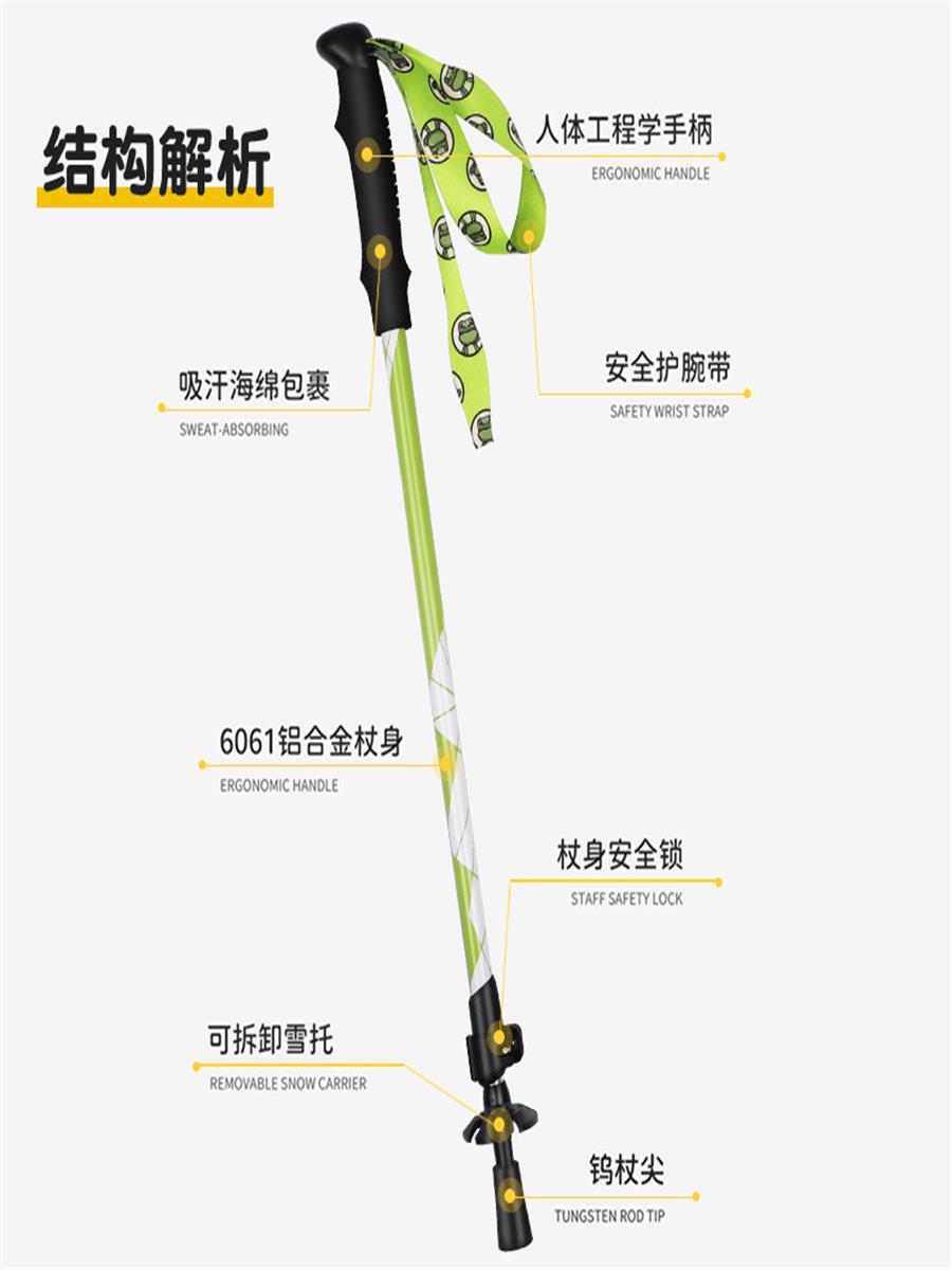 [공장] 어린이 야외 등산 스틱 알루미늄 합금 텔레스코픽 스틱 전문 미끄럼 방지 트레킹 스틱스토어 가기