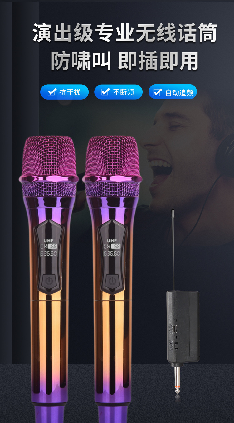 국경 간 무선 마이크 다채로운 108 홈 노래 야외 안티 하울링 일대일 충전 마이크