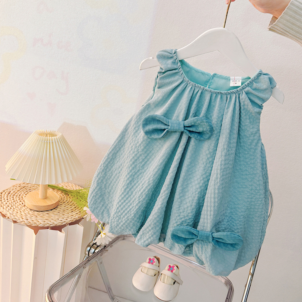 여자 민소매 큰 활 조끼 드레스 여름 2025 새로운 어린이 달콤한 드레스 아기 여름 드레스스토어 가기
