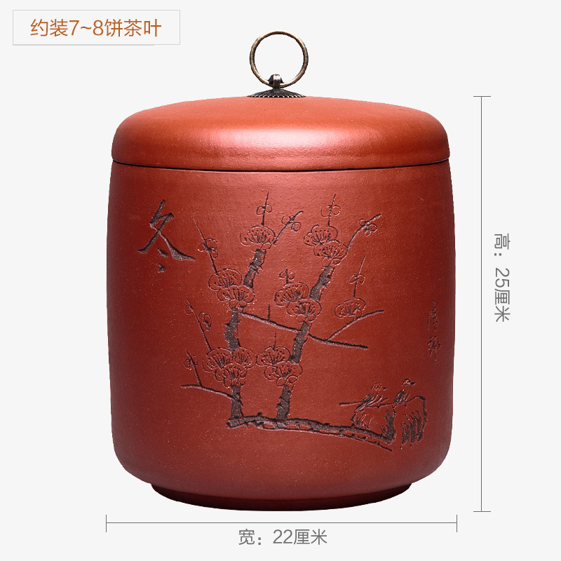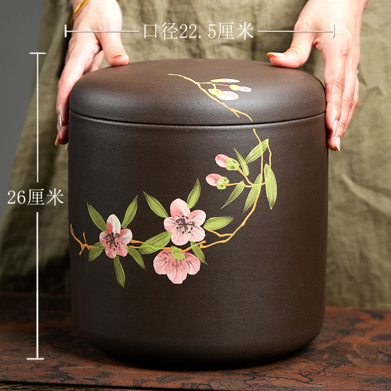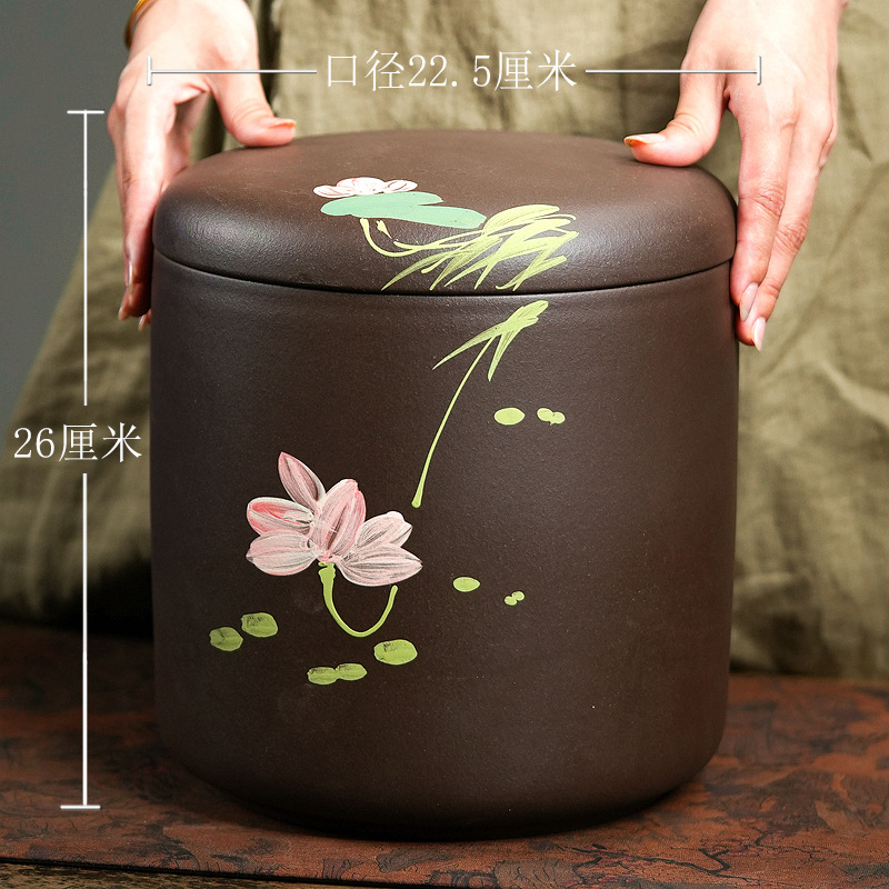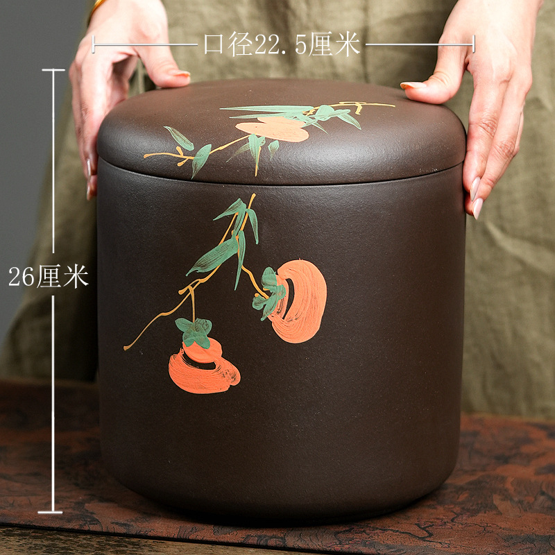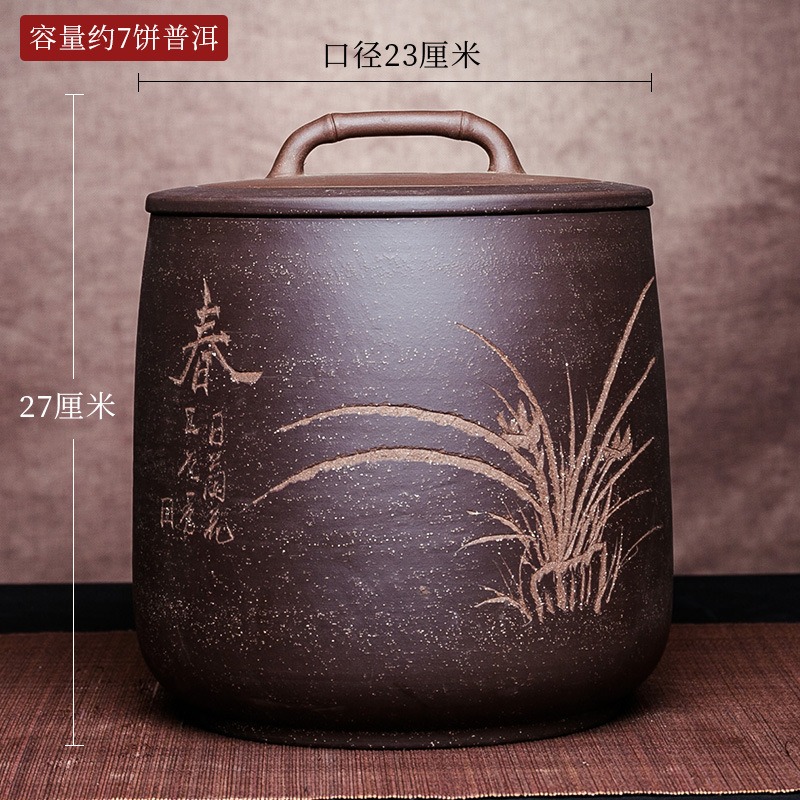 Yixing Zisha 차 항아리 대형 Pu'er 차 통 차 깨우기 장치 세라믹 통기성 가정용 쌀 항아리 Qizi 케이크 보관