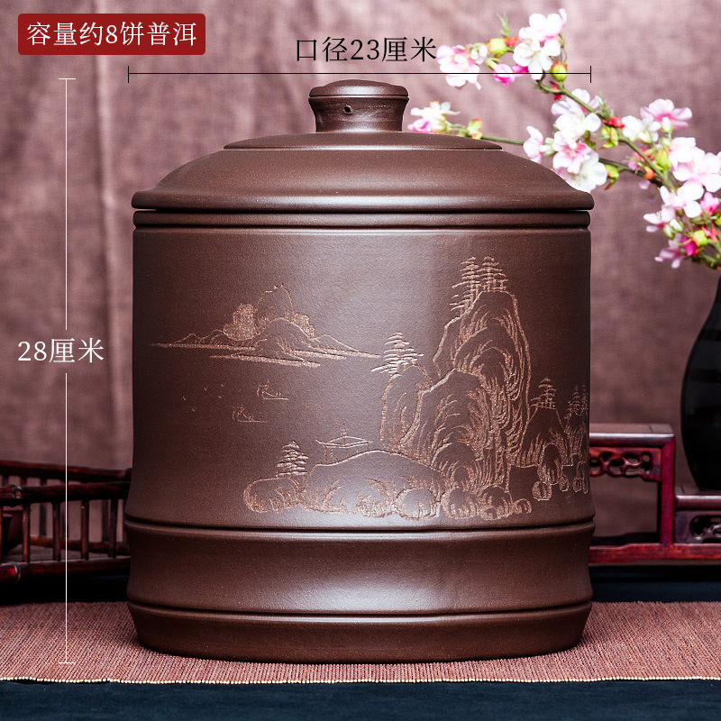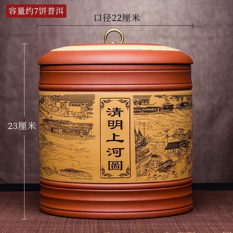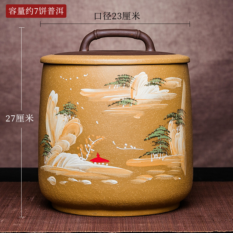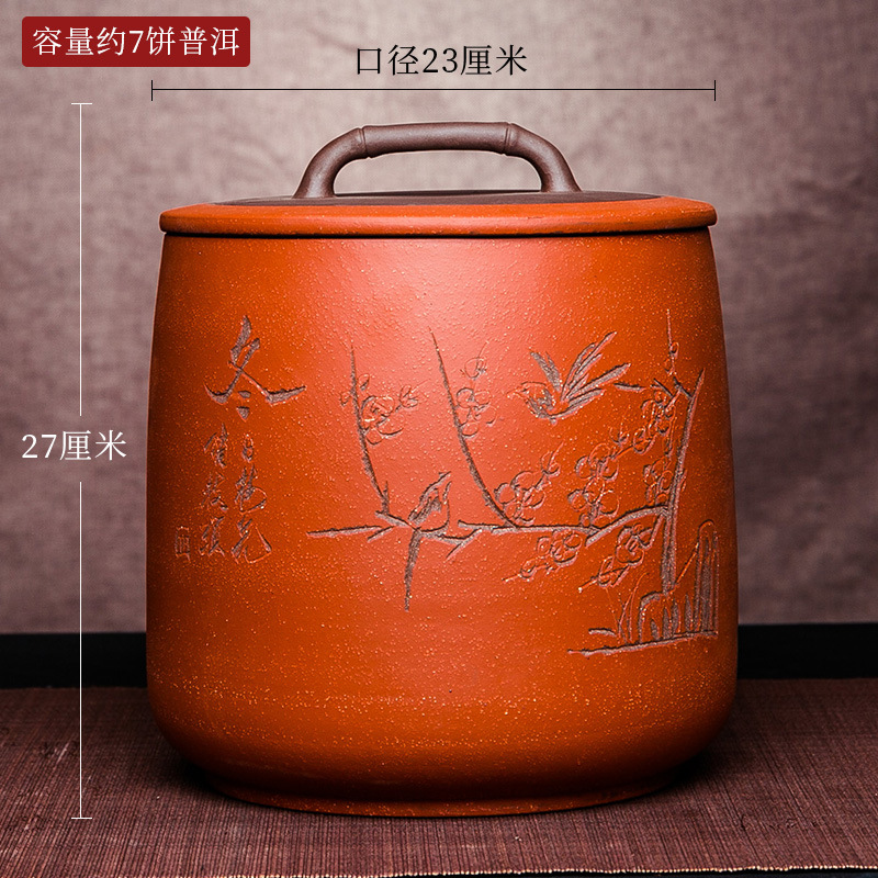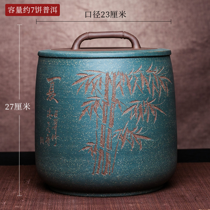 Yixing Zisha 차 항아리 대형 Pu'er 차 통 차 깨우기 장치 세라믹 통기성 가정용 쌀 항아리 Qizi 케이크 보관스토어 가기