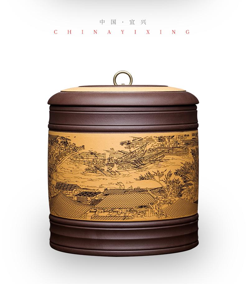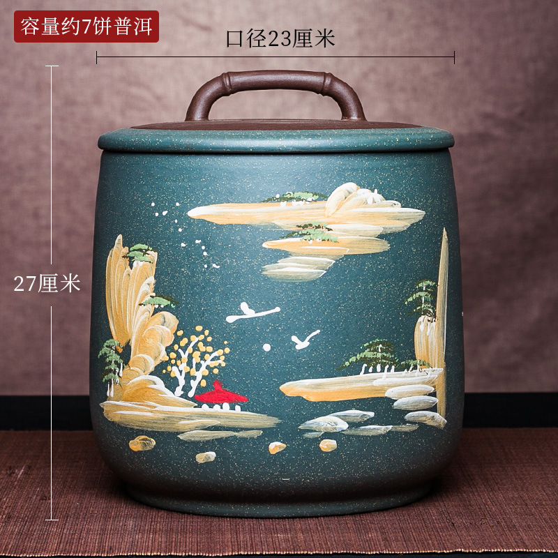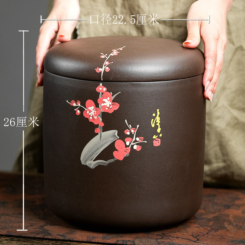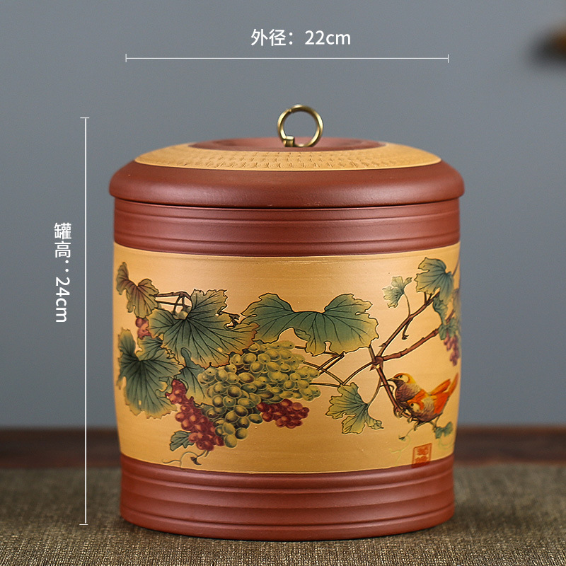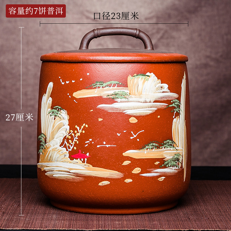 Yixing Zisha 차 항아리 대형 Pu'er 차 통 차 깨우기 장치 세라믹 통기성 가정용 쌀 항아리 Qizi 케이크 보관스토어 가기