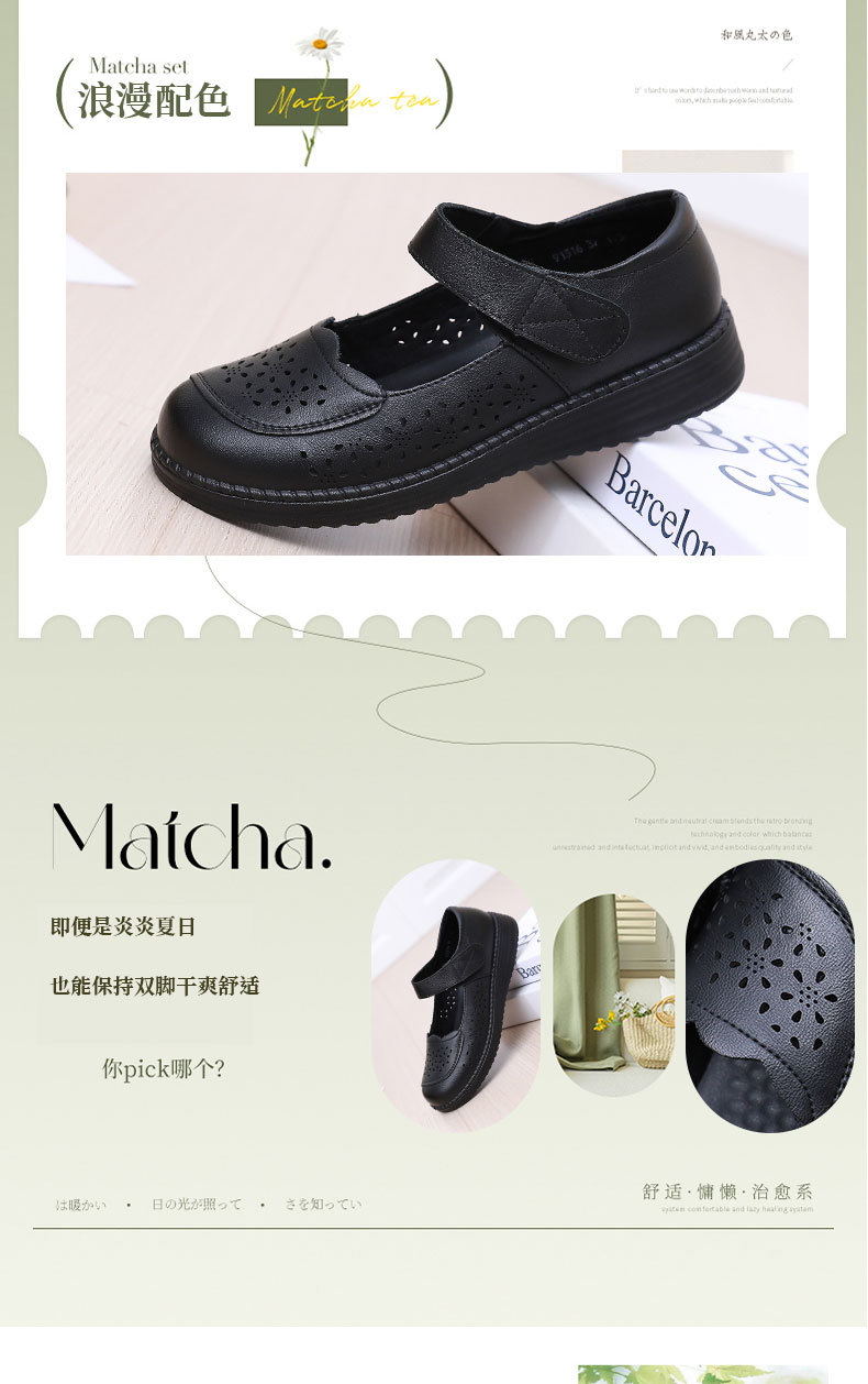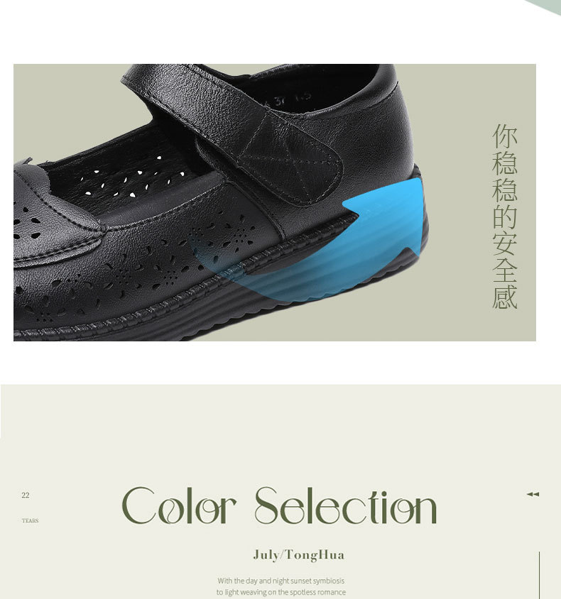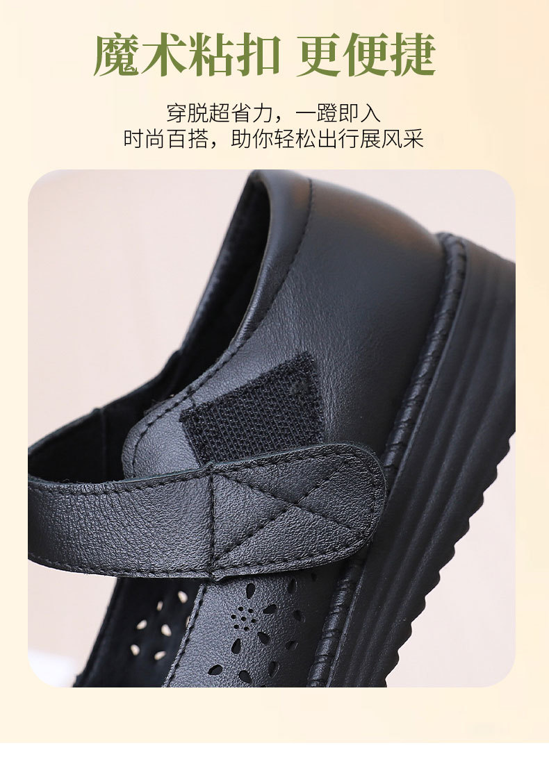 采用聚氨酯软底,妈妈鞋专用鞋底,轻质防滑耐磨不累脚。