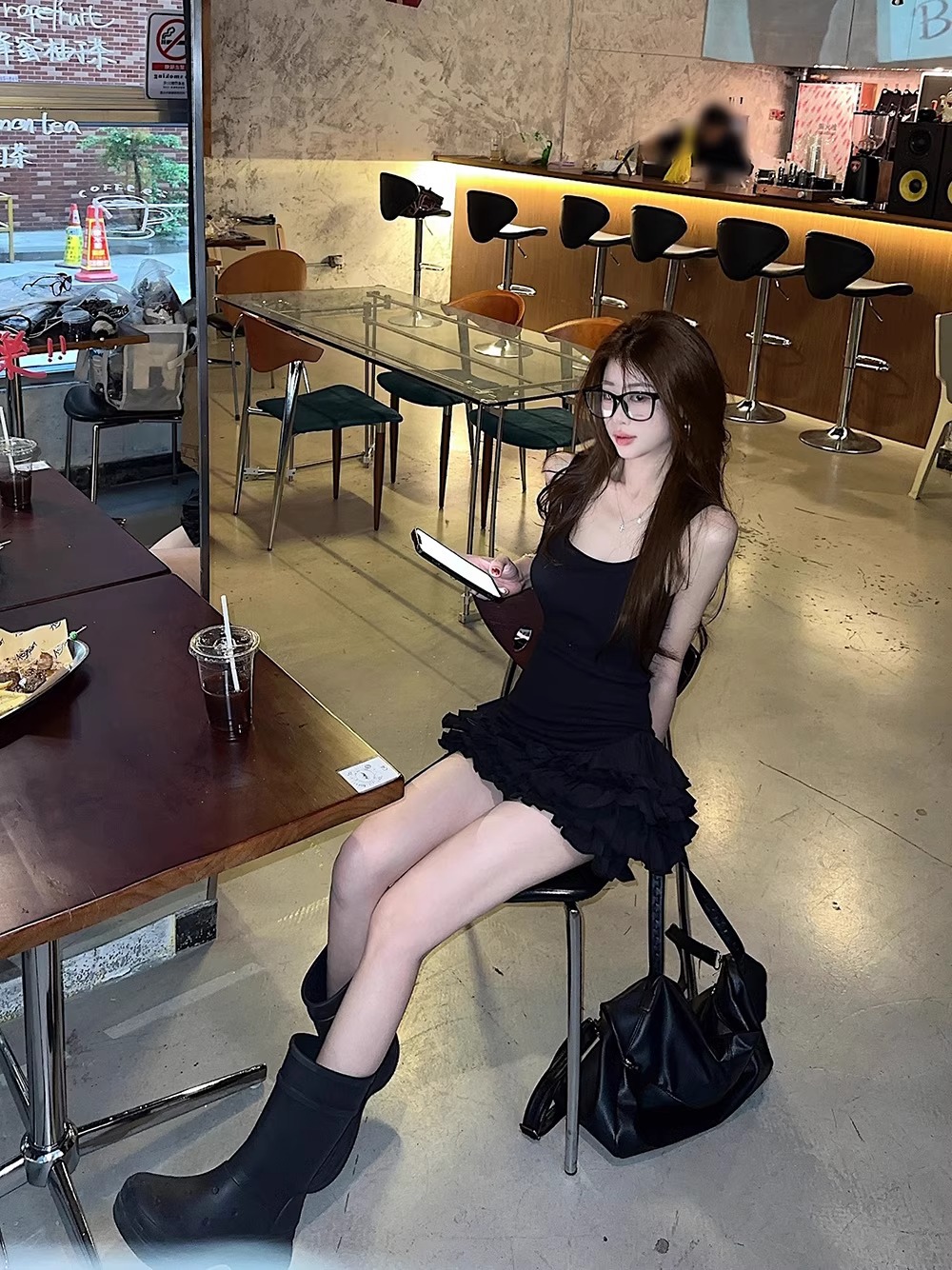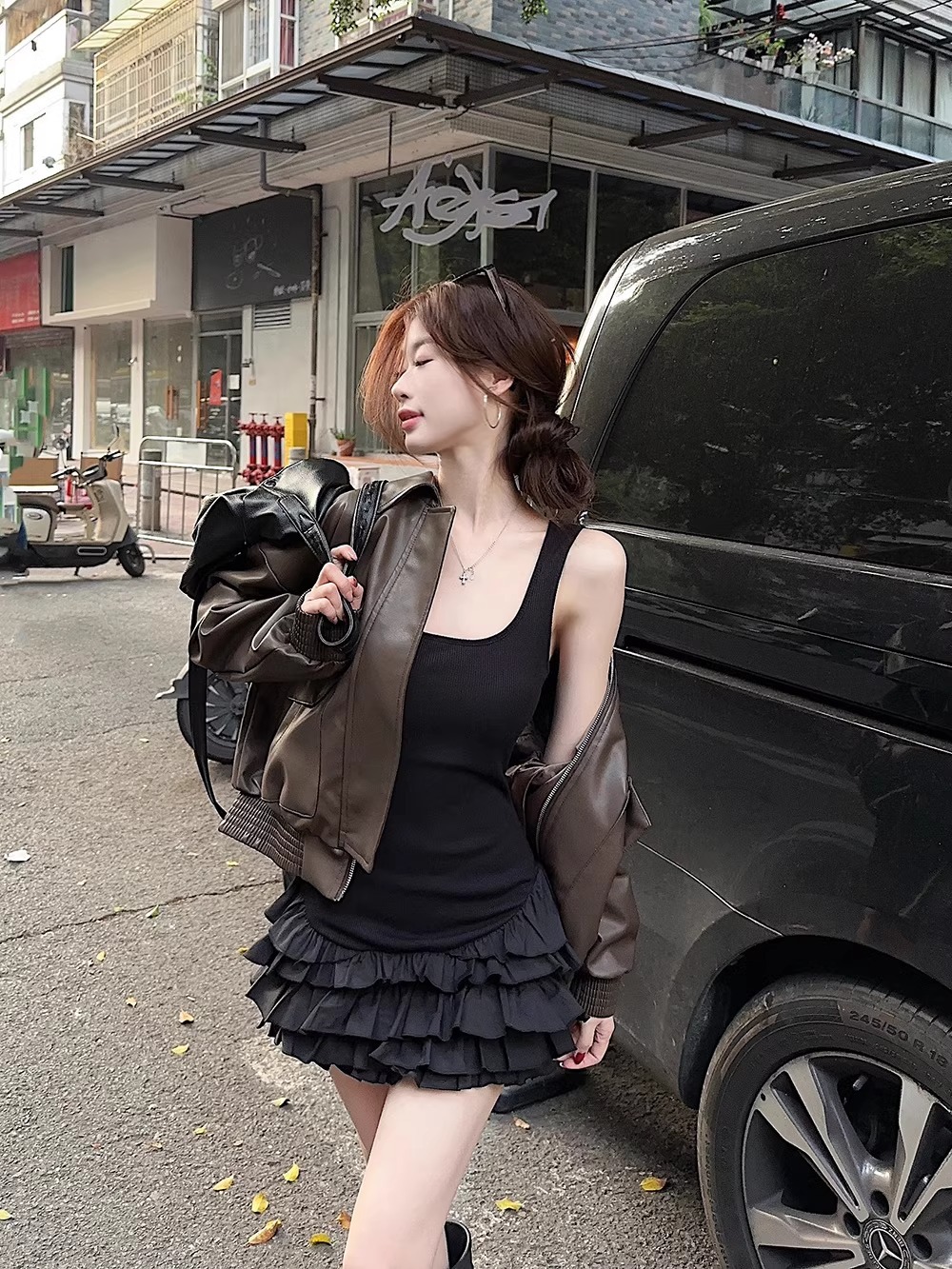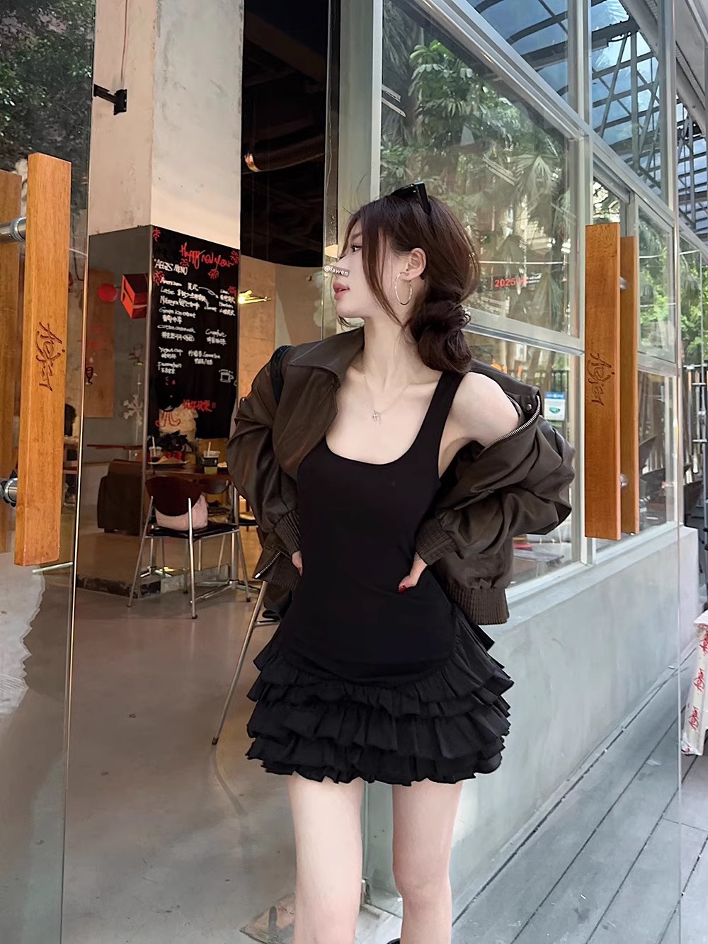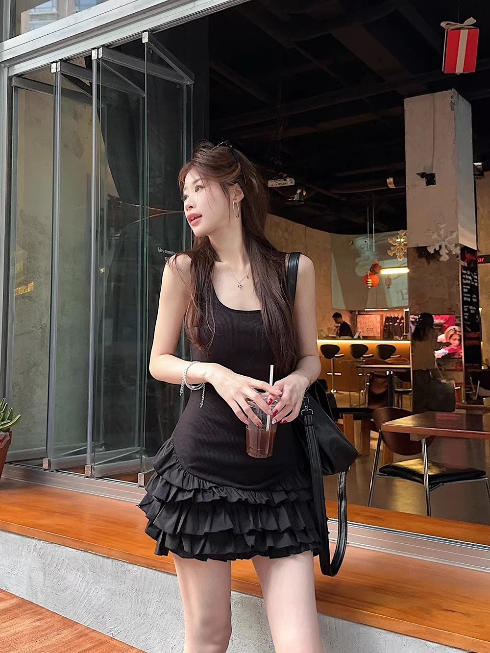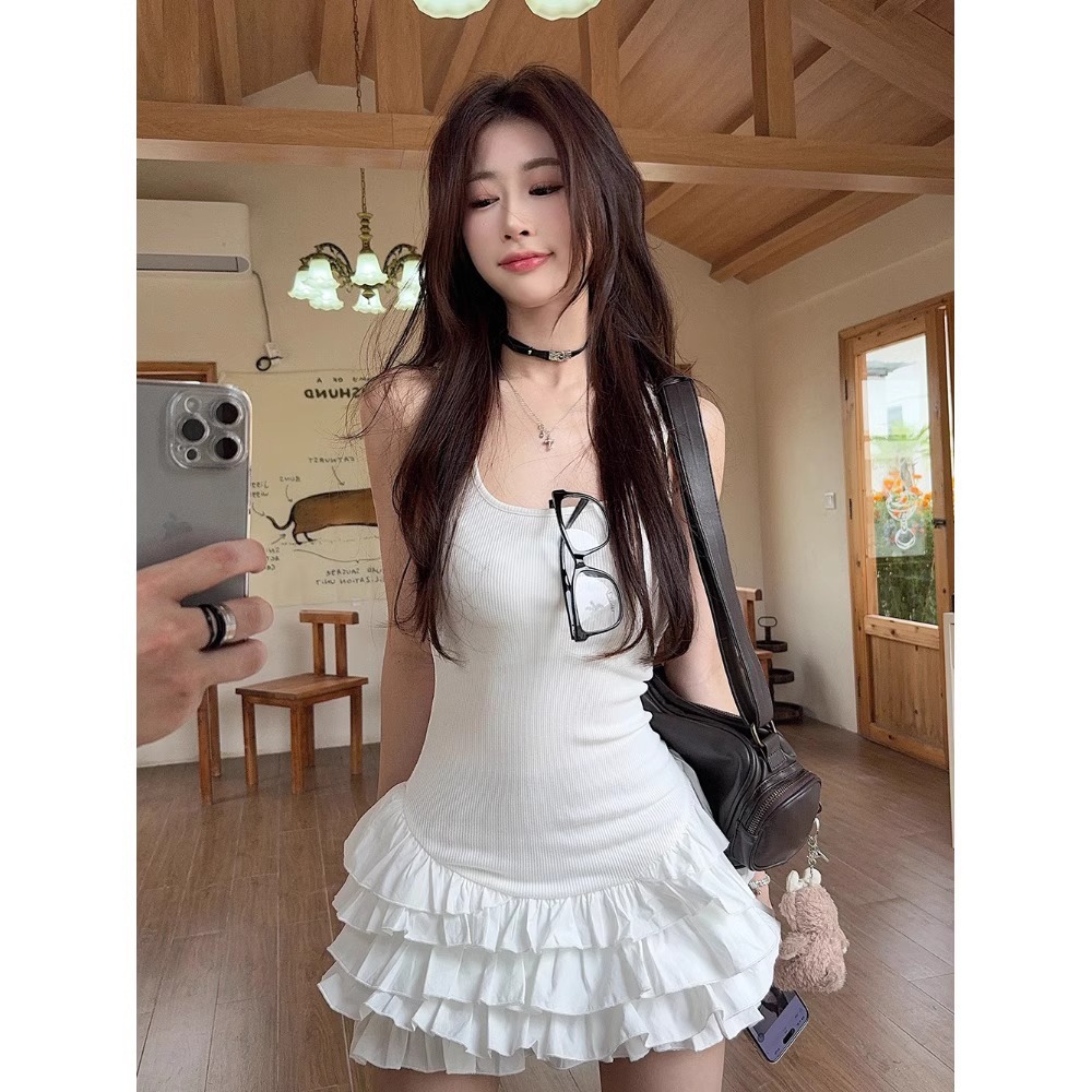 달콤한 스타일 화이트 슬링 원피스 여성 의류 여름 독특한 러플 스커트 발레 스타일 A 라인 스커트스토어 가기