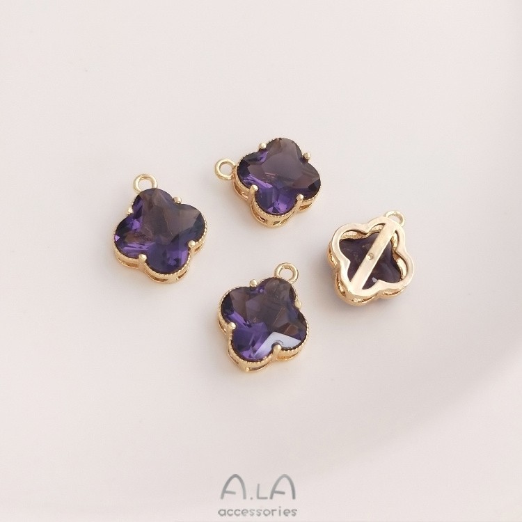 14K 금으로 채워진 색상 보존 상감 컬러 지르코늄 네잎 클로버 펜던트 크리스탈 지르콘 러브 펜던트 diy 쥬얼리 액세서리 펜던트스토어 가기