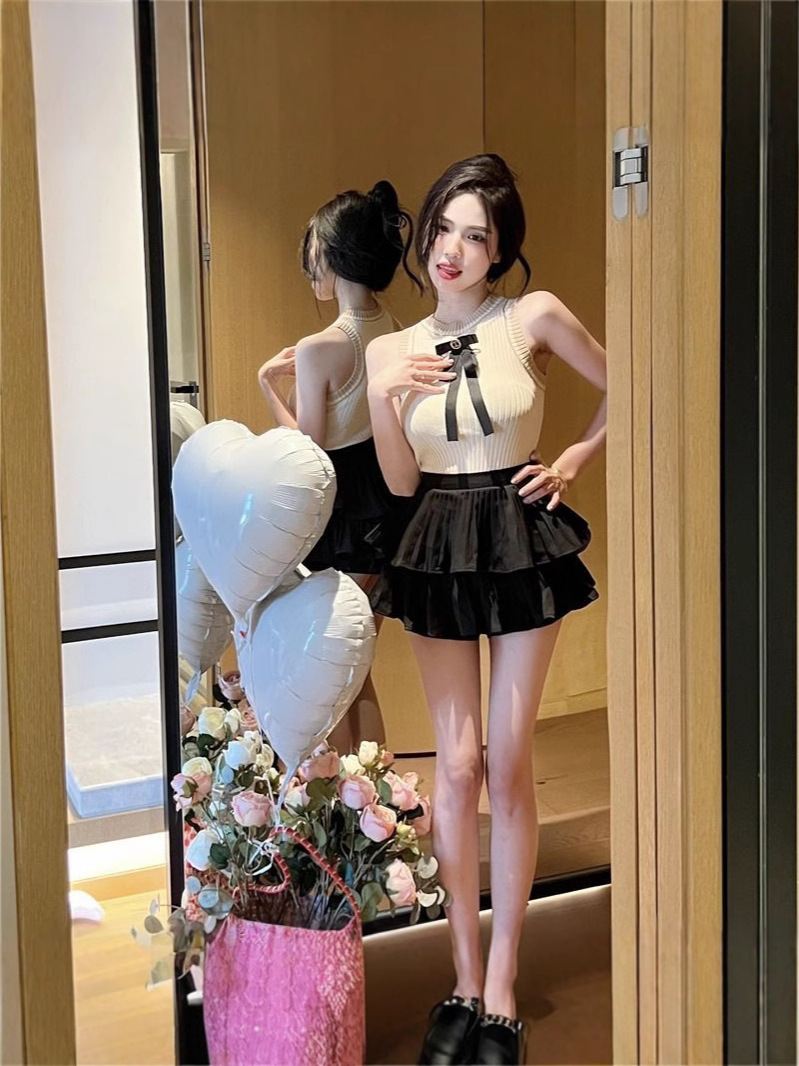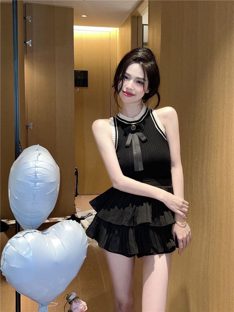 슬리밍 여름 스웨터 탑이 있는 라운드 넥 조끼, 민소매 타이트한 짧은 여성용 노출 방지 바닥 셔츠