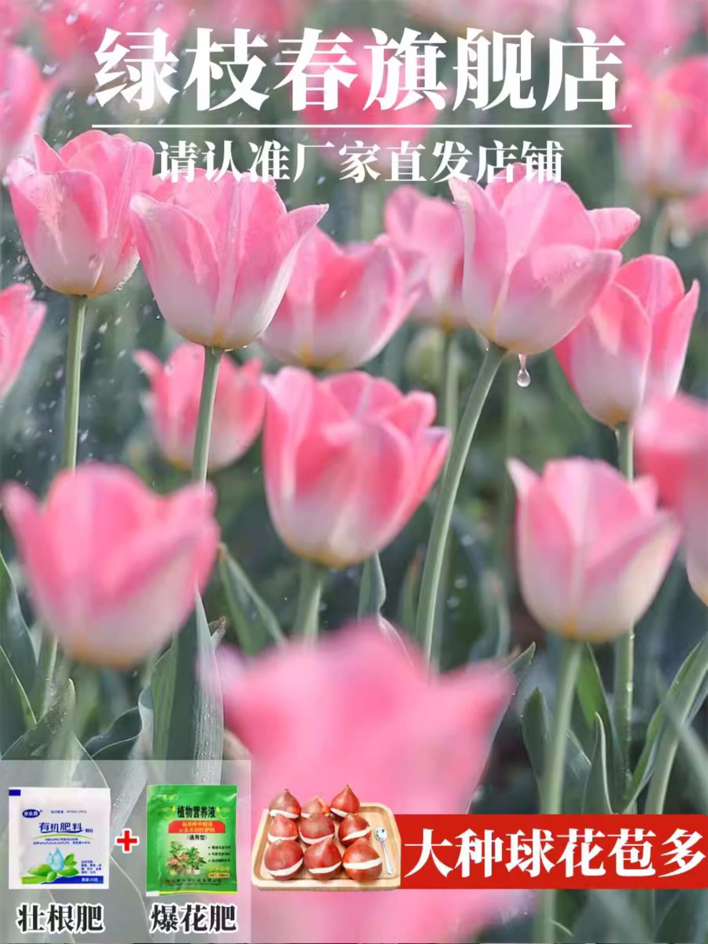 • [수입 대형 구근으로 새싹이 많음] Y6 Qiyu 핑크 튤립 대형 구근 5개 + 영양액 2팩 + 비료 2팩