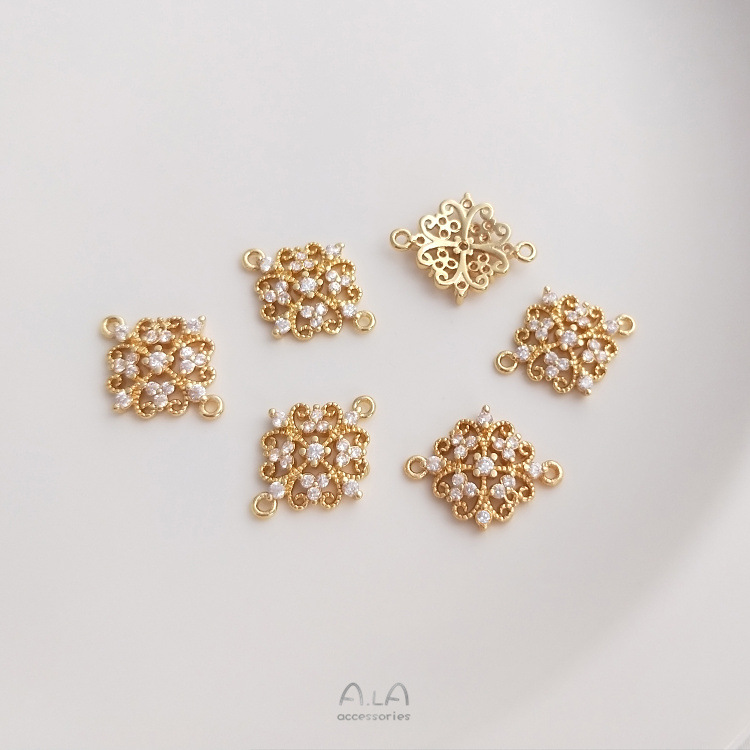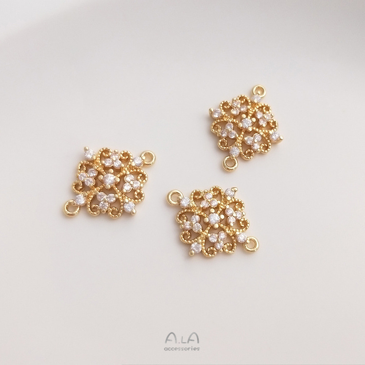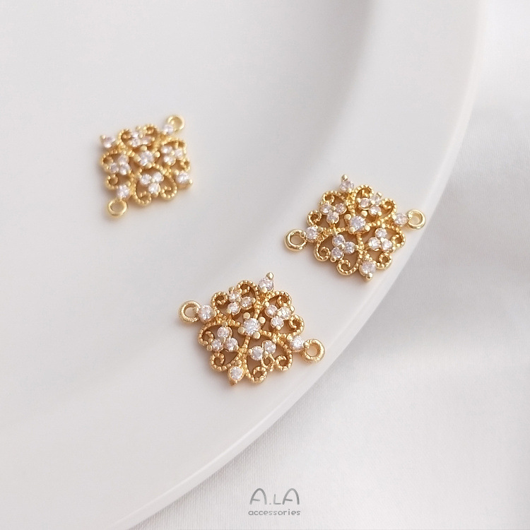색상 보존 더블 펜던트 액세서리 14K 금으로 채워진 마이크로 상감 지르콘 네잎 클로버 펜던트 수제 diy 팔찌 귀걸이 쥬얼리 액세서리스토어 가기