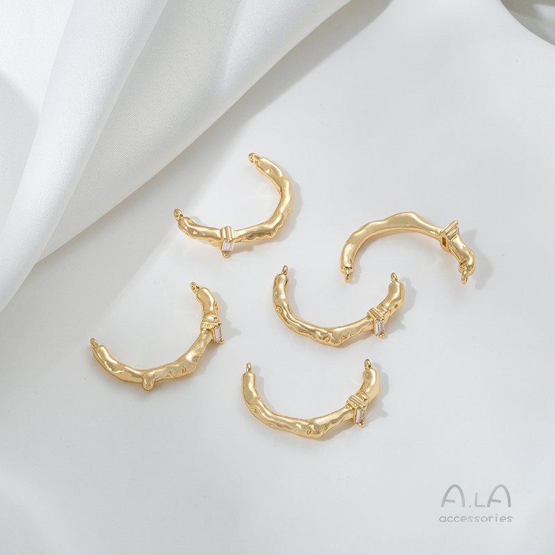 색상 보존 14K 금으로 채워진 반원형 나뭇가지 반지 액세서리 나뭇가지 모양의 더블 펜던트 DIY 스트링 진주 목걸이 팔찌 연결 스틱스토어 가기
