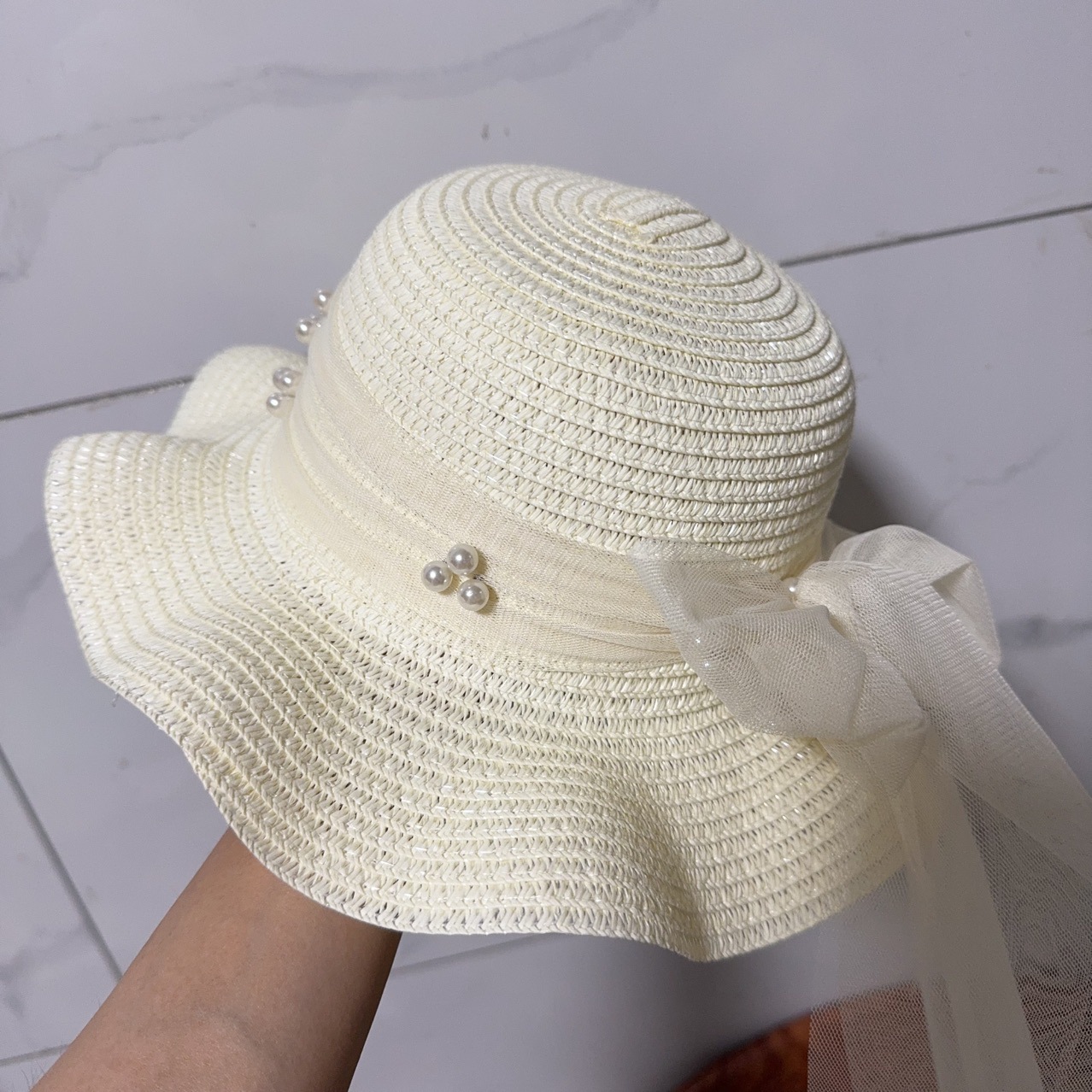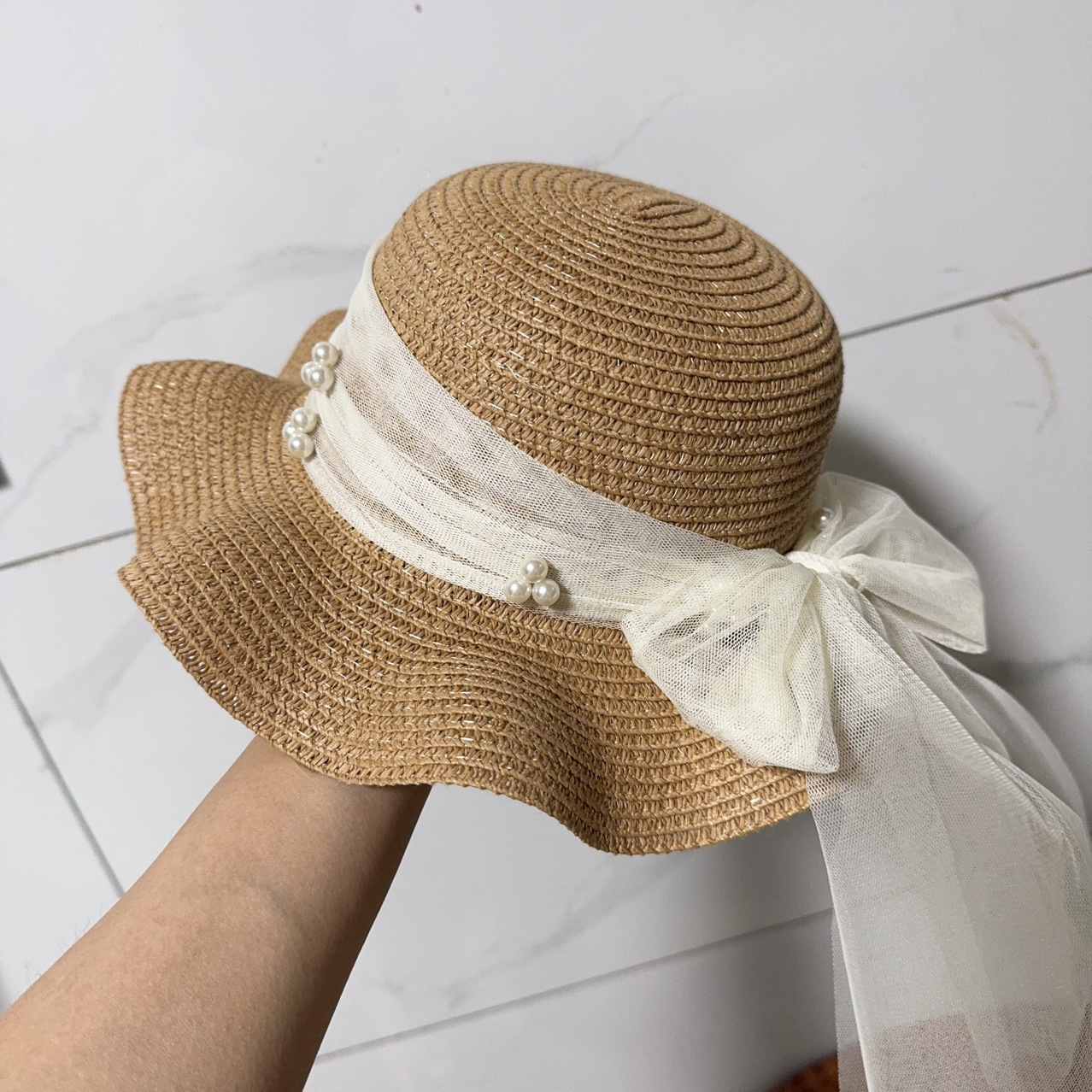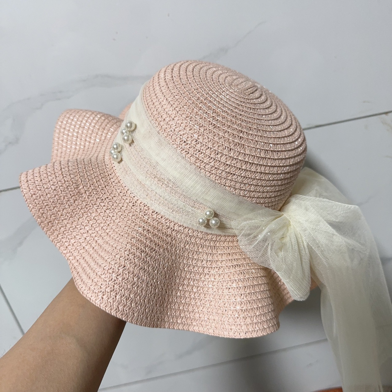 여름 우아한 밀짚 진주 메쉬 태양 모자 소녀 Bowknot 프랑스어 태양 보호 모자 해변 연꽃 모자스토어 가기