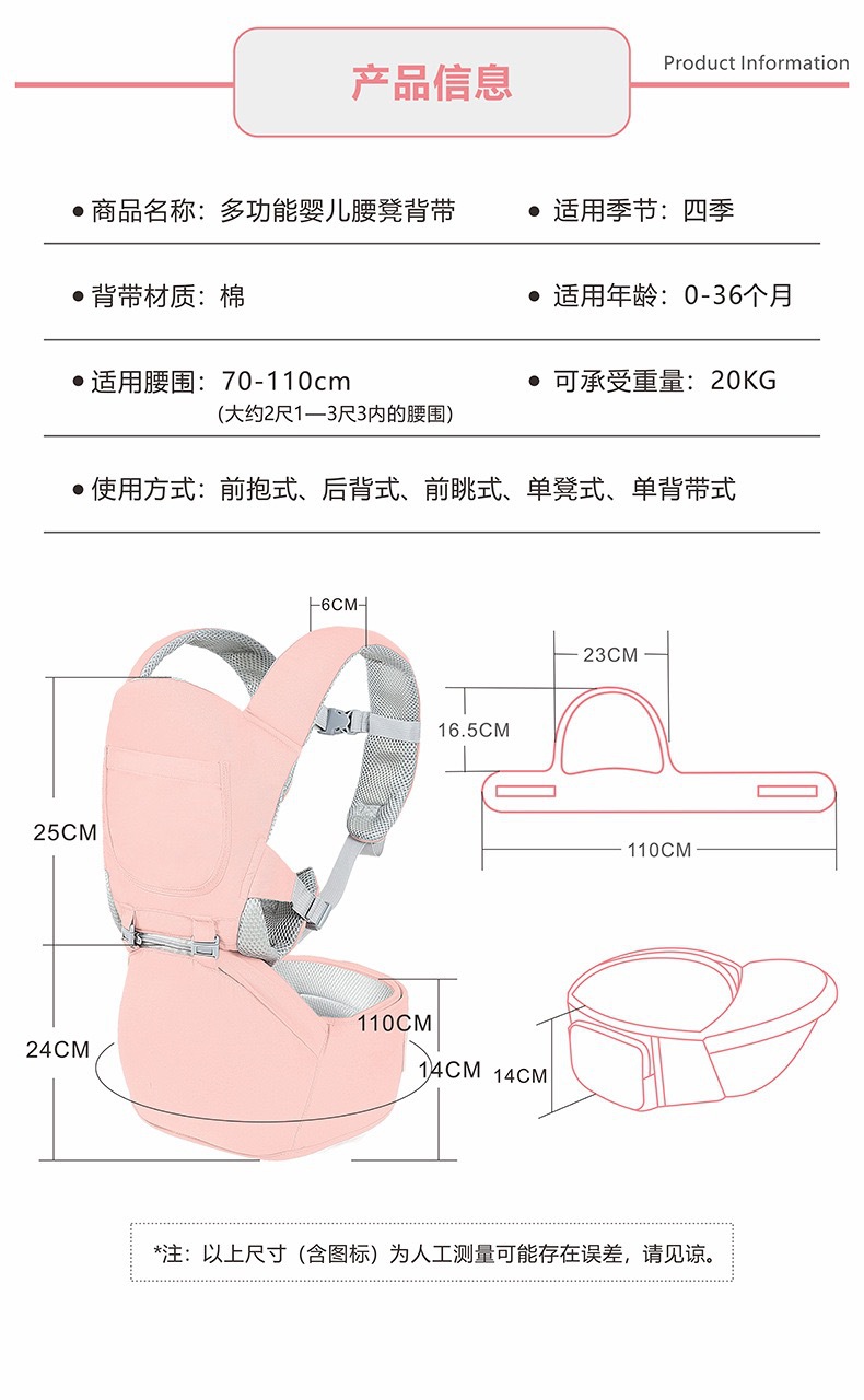 새로운 탈착식 아기띠 허리 의자 여름 아기 다기능 아기 안장 아기 앞 안장 사계절 통기성스토어 가기