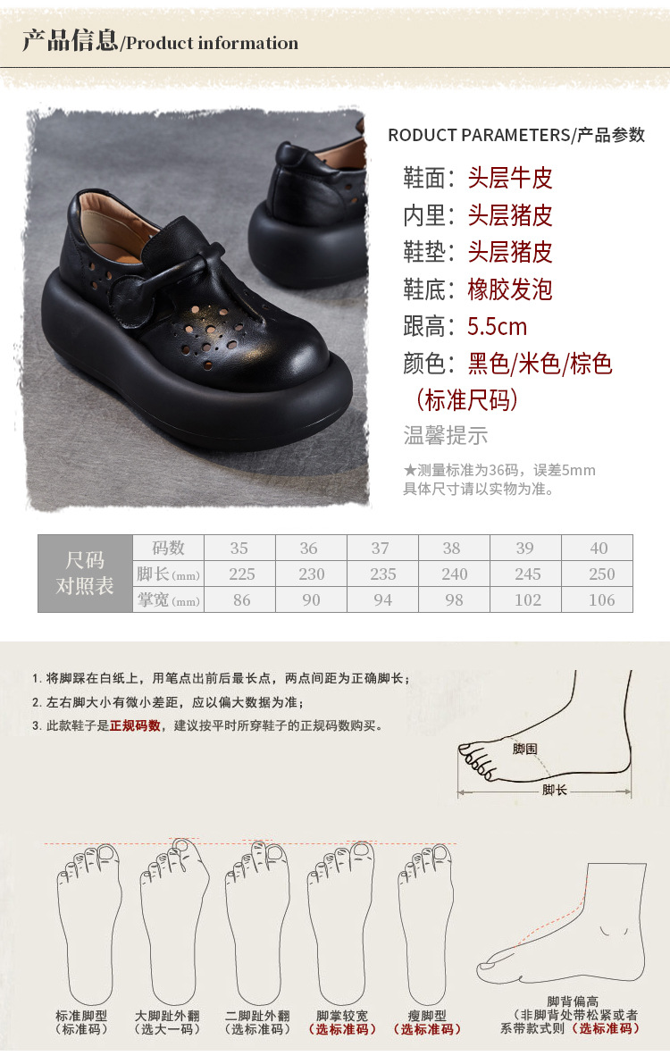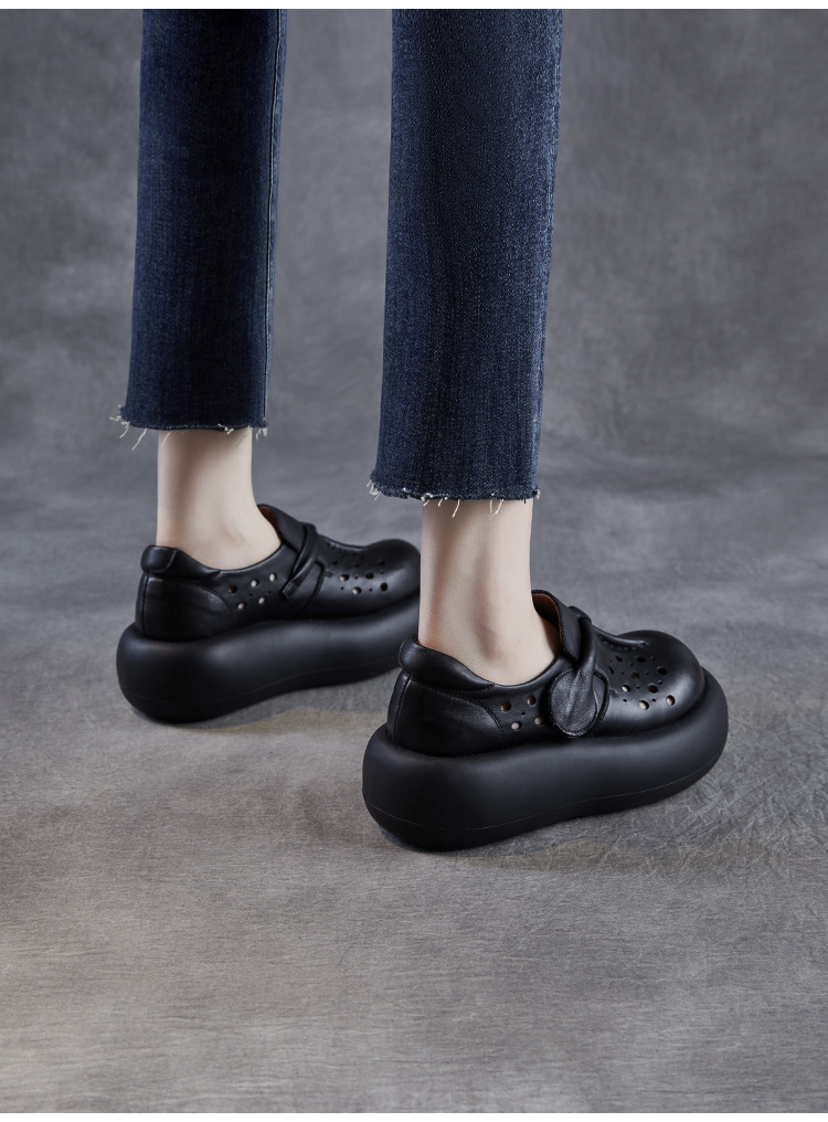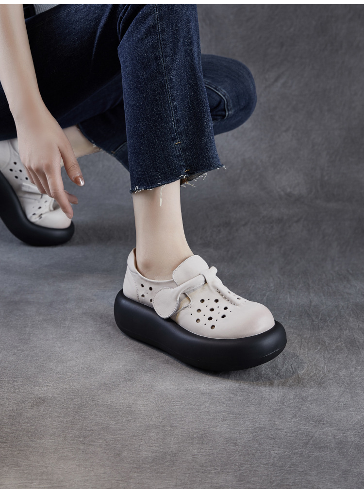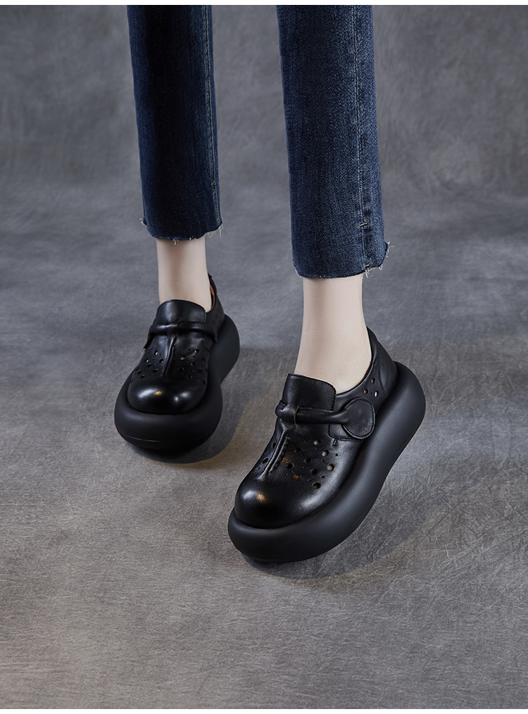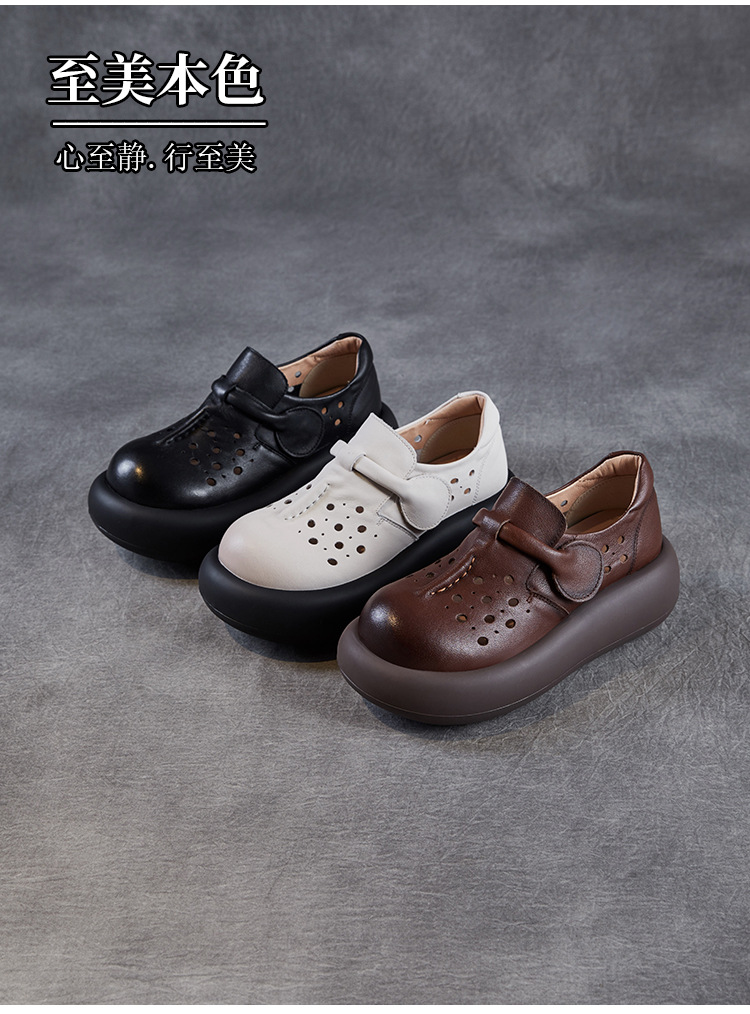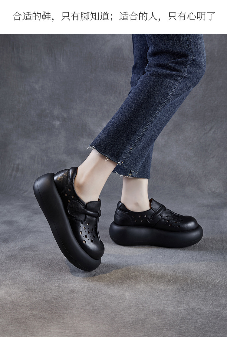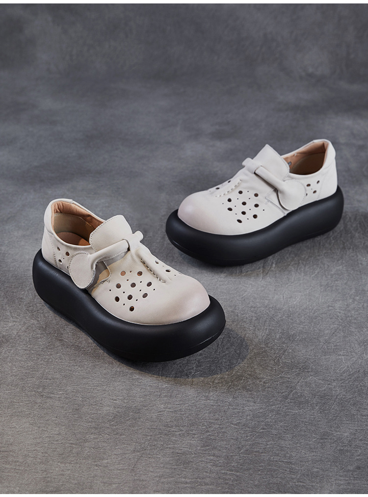 2025 여름 중공 고층 두꺼운 구멍 여성 신발 정품 가죽 귀여운 큰 머리 Cowhide 여성용 샌들