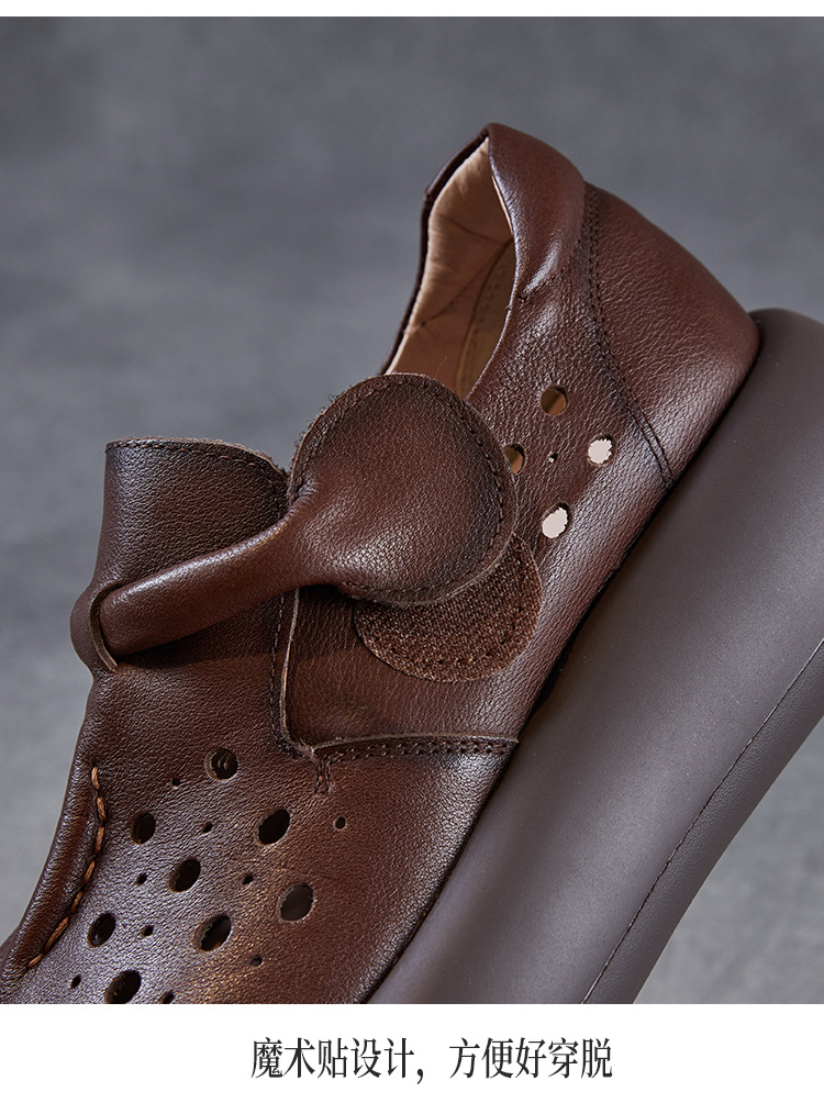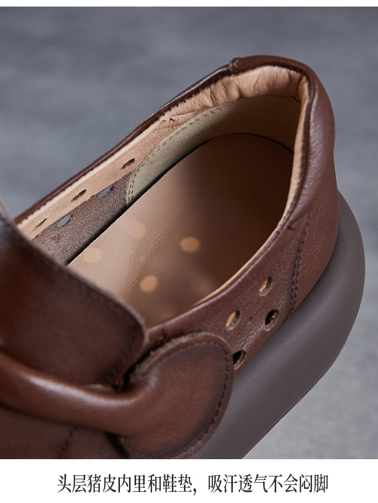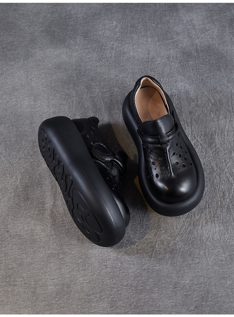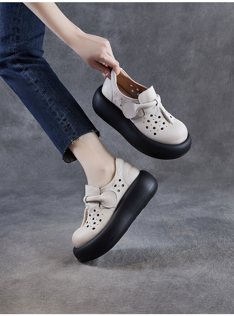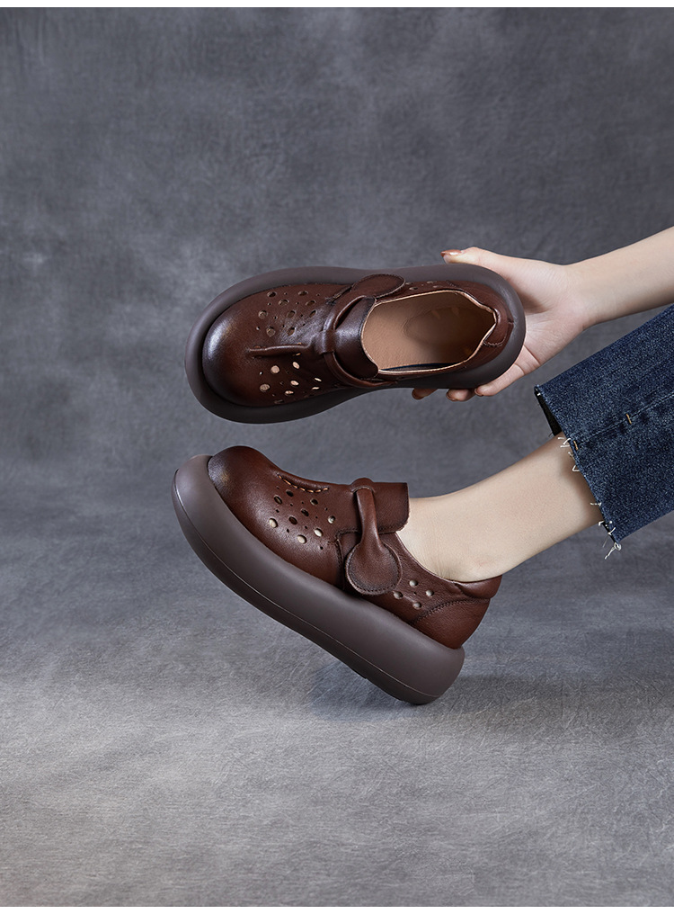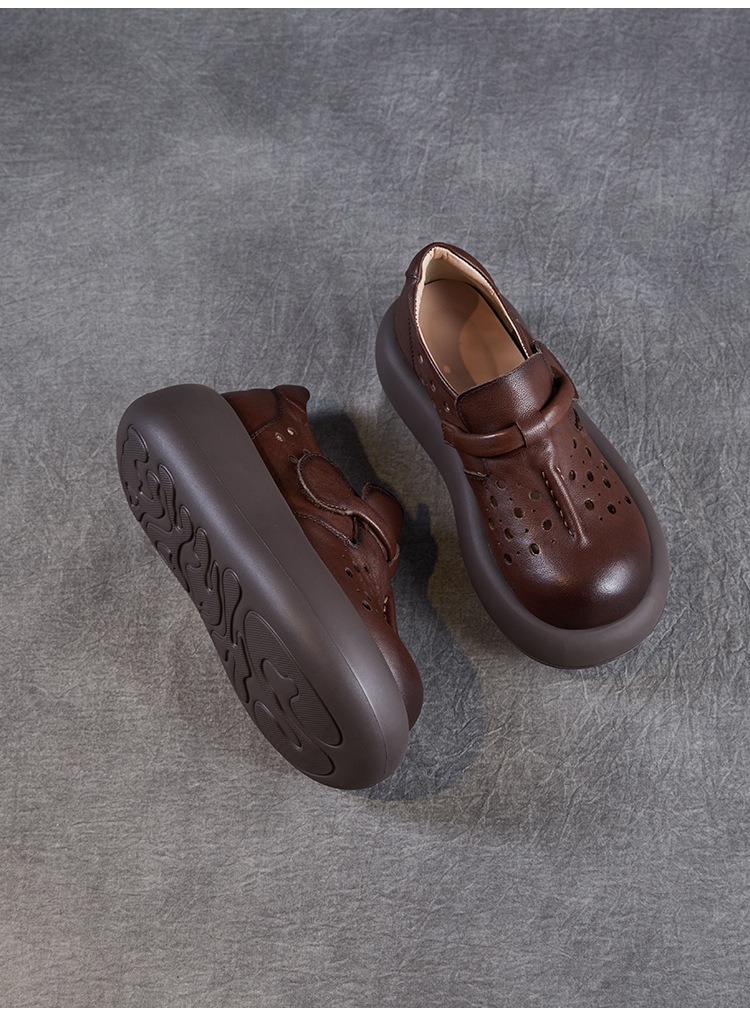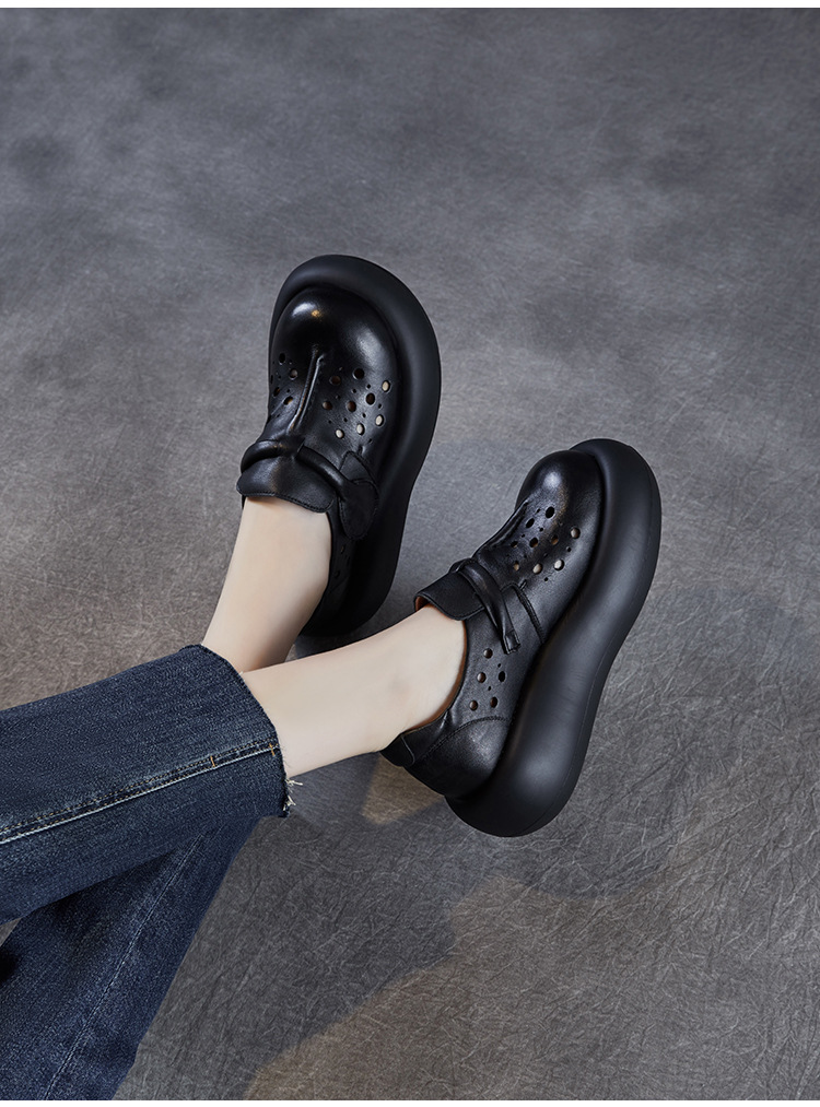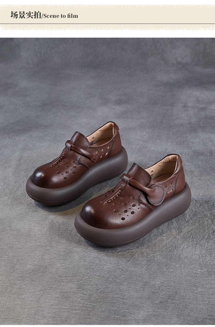 2025 여름 중공 고층 두꺼운 구멍 여성 신발 정품 가죽 귀여운 큰 머리 Cowhide 여성용 샌들